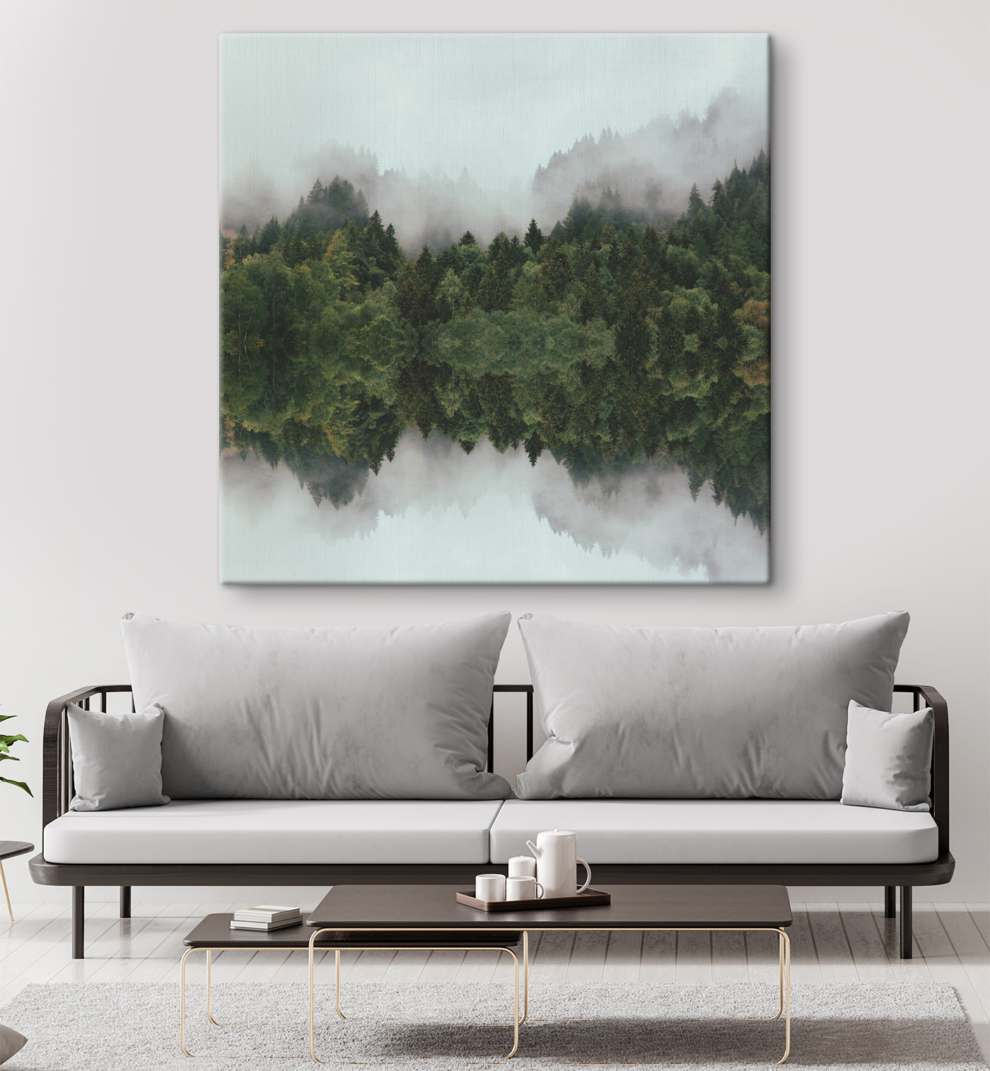 Wyobraź sobie, że wkraczasz do spokojnego lasu bez wychodzenia z przytulnego salonu. Ten wydruk na płótnie przedstawia oszałamiające odbicie drzew w spokojnych wodach, prawie jak lustro natury. Bujna zieleń, szepcząca bryza i odrobina mgły przywołują spokojne uczucie wędrówki przez cichą polanę. To idealny element, który wprowadzi odrobinę spokoju do każdej przestrzeni. Wyobraź sobie, że popijasz kawę, wpatrując się w to piękno – to jak mini-wakacje dla twojego umysłu. Idealny dla miłośników natury lub każdego, kto potrzebuje odrobiny zen w swoim wystroju. Kto nie poczułby się bardziej zrelaksowany w takim otoczeniu?