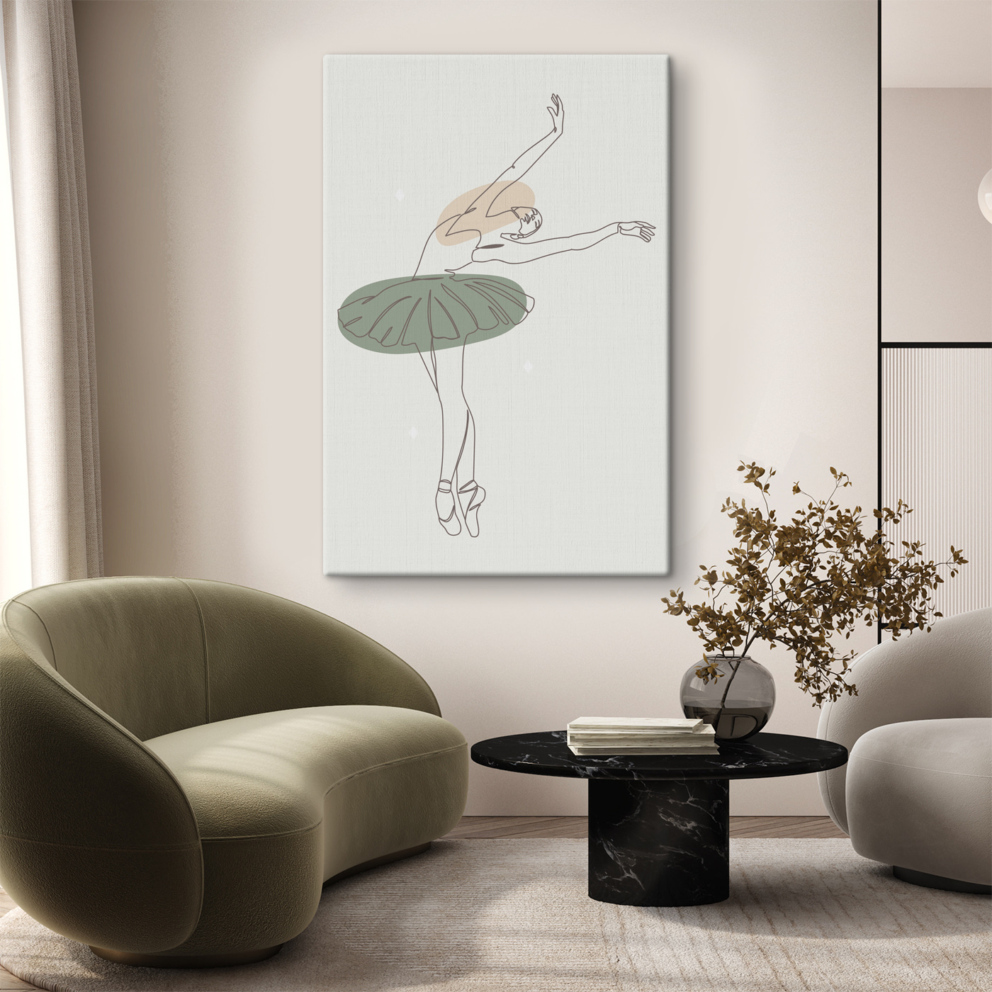 Oto Twoje kolejne ulubione dzieło sztuki na ścianę: obraz na płótnie “Drawing of a Ballerina”! Wyobraź to sobie: oszałamiający, minimalistyczny szkic wdzięcznej baletnicy, ubrany w miękkie, ziemiste odcienie, które po prostu krzyczą elegancją. Idealny do pustego miejsca nad kanapą, nie sądzisz? To trochę jak studio tańca w salonie.