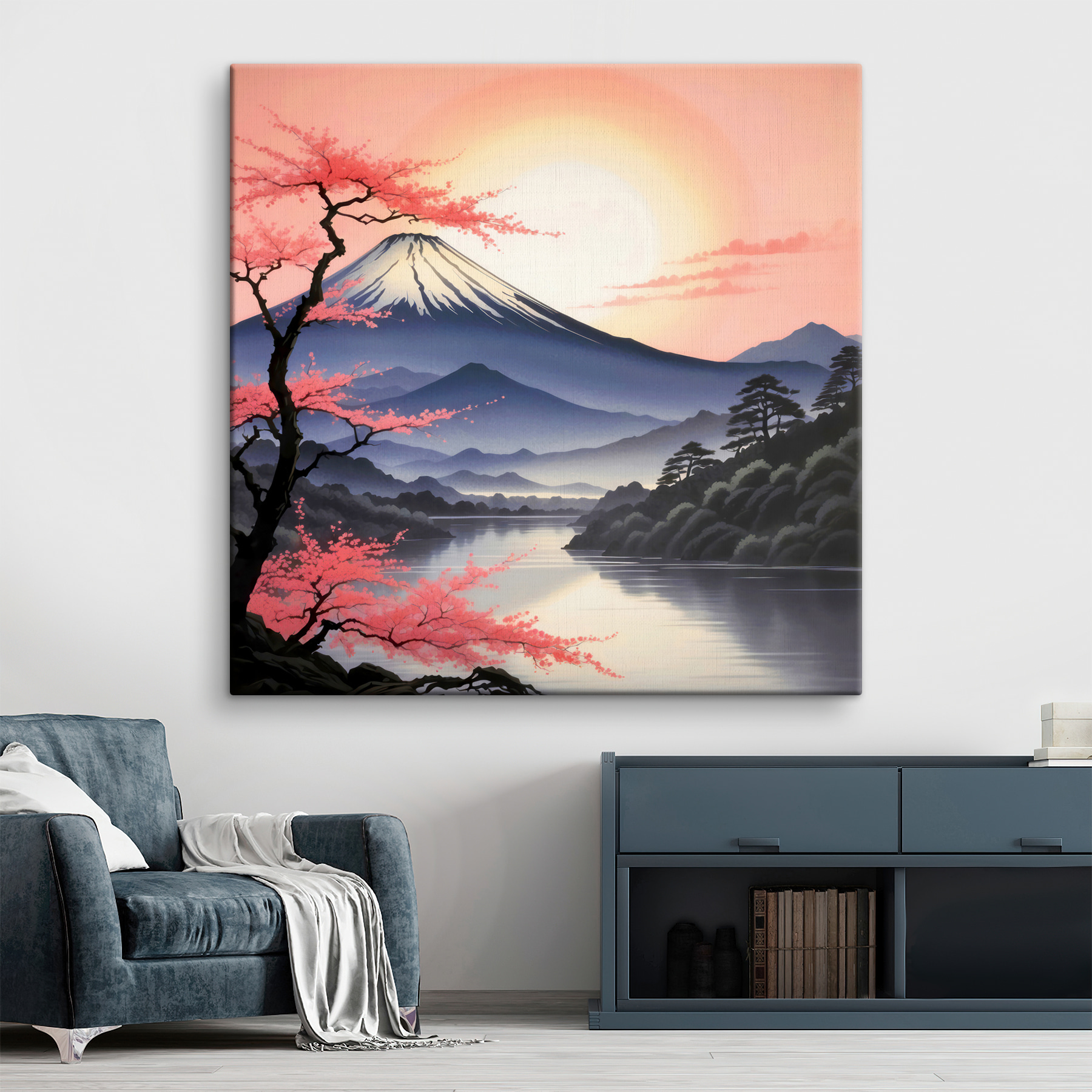 Wejdź do spokojnego świata dzięki temu wspaniałemu drukowi na płótnie przedstawiającemu pogodne drzewo na szczycie majestatycznej góry. Delikatne odcienie różu i błękitu otaczają scenę niczym ciepły uścisk, dzięki czemu idealnie nadaje się do każdego pomieszczenia, w którym przydałaby się odrobina zen. Wyobraź sobie, że popijasz herbatę, wpatrując się w nią i czujesz, jak stres dnia znika. Delikatne kwiaty wiśni dodają figlarnego popu koloru, przypominając, że piękno może kwitnąć nawet w najdzikszych krajobrazach. Jest to element, który szepcze historie o naturze, przygodzie i spokoju – w sam raz, aby zaprosić spokój do swojej przestrzeni.
