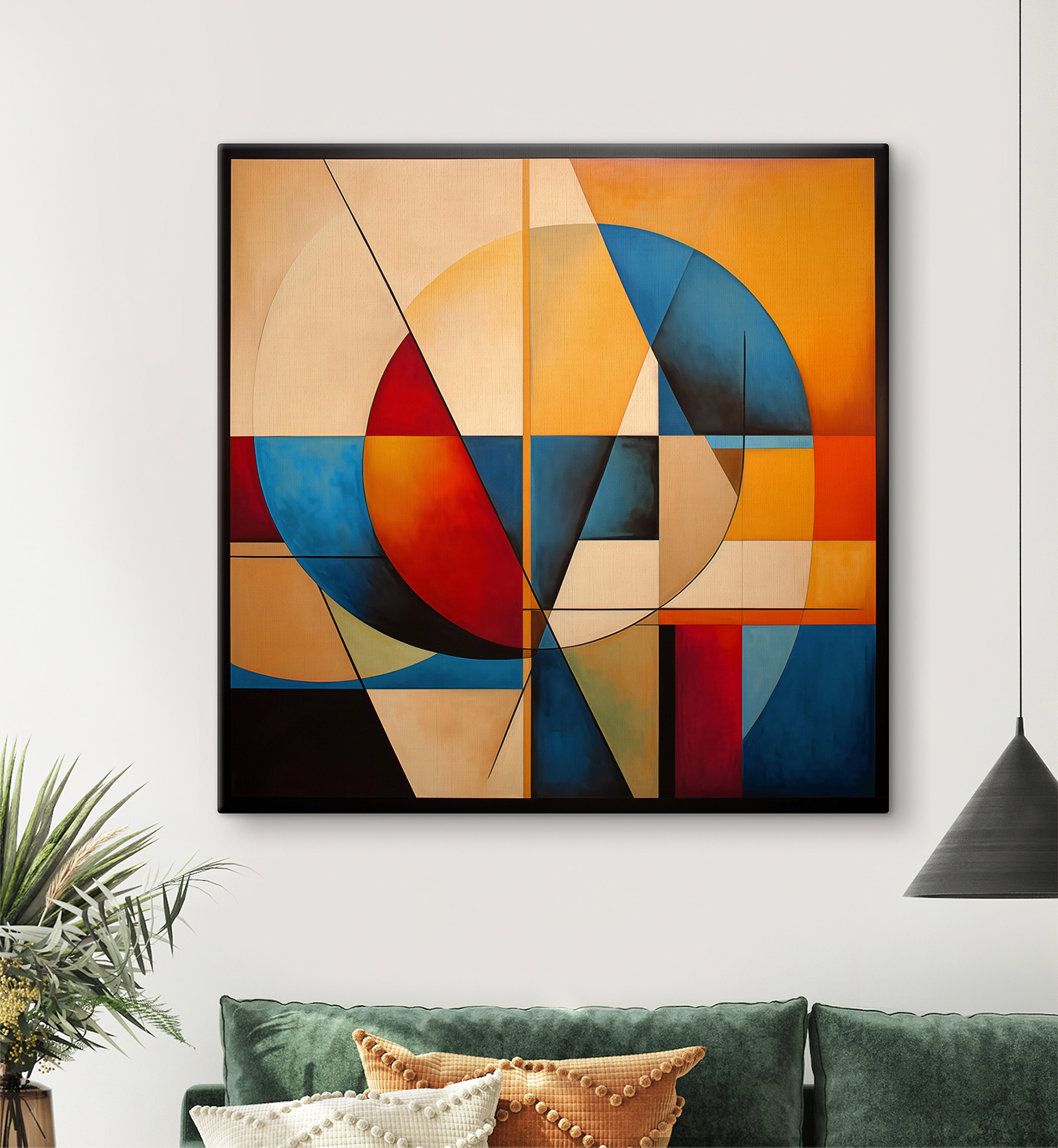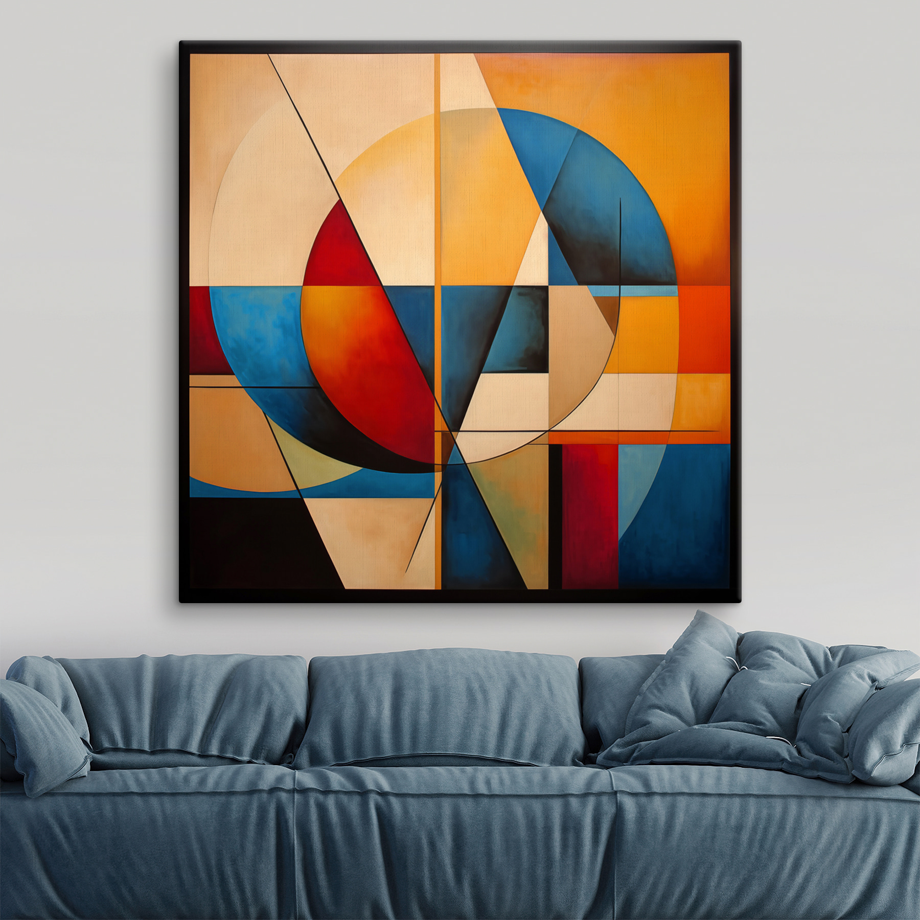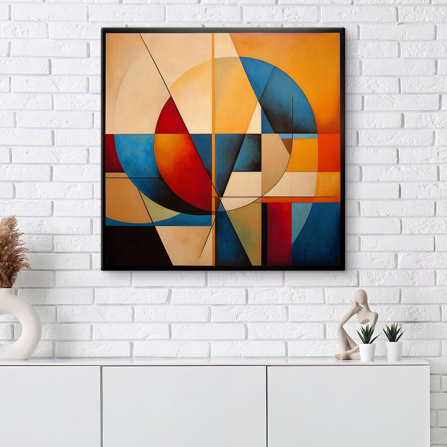 Czy zastanawiałeś się kiedyś, jak zwykły okrąg może być tak urzekający? Ten “Obraz na płótnie przedstawiający koło i okrąg” jest idealny dla każdego, kto kocha abstrakcję. Mieszanka żywych czerwieni, uspokajających błękitów i słonecznych żółci w geometrycznych kształtach – to jak wizualny taniec na ścianie.