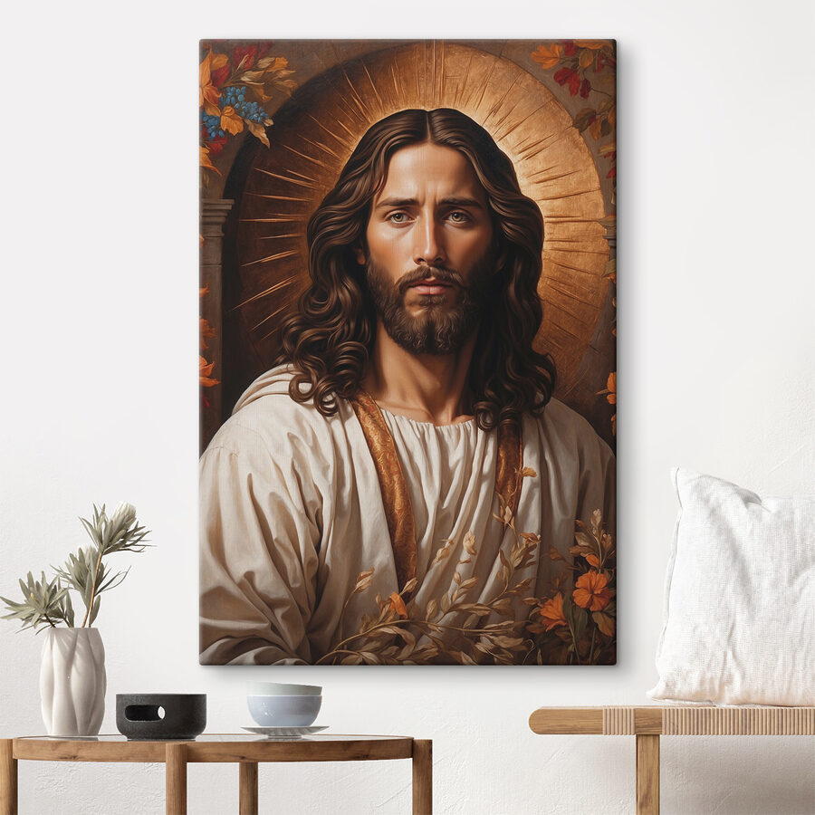 Odmień każde pomieszczenie dzięki temu urzekającemu obrazowi na płótnie przedstawiającemu świętą postać promieniującą ciepłem i spokojem. To tak, jakby mieć pocieszającą obecność bezpośrednio na ścianie. Delikatna poświata wokół postaci nie tylko przyciąga wzrok, ale także sprawia, że czujesz się skoncentrowany i podniesiony na duchu.