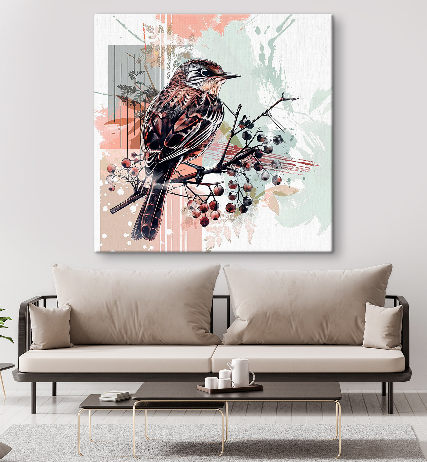 Hej, spójrz na ten uroczy wydruk na płótnie zatytułowany “Bird on a Branch”! Jest on idealny do dodania odrobiny natury do Twojej przestrzeni. Wyobraź sobie, że wracasz do domu po długim dniu, a ten przyjazny ptak wita Cię swoimi misternymi detalami i ciepłymi kolorami. Mieszanka delikatnych plam i ziemistych odcieni nadaje mu artystyczny charakter bez przytłaczania oka. Świetny dla każdego, kto kocha zwierzęta i chce odrobiny świeżego powietrza we wnętrzu. To tak, jakby mieć kawałek spokojnego ogrodu bezpośrednio na ścianie. Idealny do ożywienia każdego pomieszczenia, niezależnie od tego, czy jest to salon, przytulny kącik do czytania, czy nawet korytarz. Po prostu zachwycający element, który z pewnością wywoła uśmiech na Twojej twarzy!