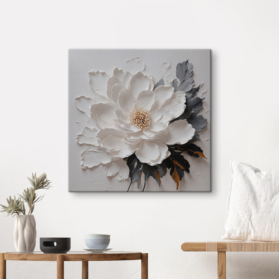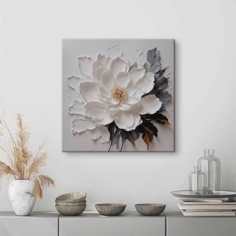 Wyobraź sobie, że wchodzisz do przytulnego pokoju i wita Cię ten oszałamiający wydruk na płótnie przedstawiający biały kwiat z urzekającymi płatkami, które zdają się niemal wyskakiwać ze ściany. To tak, jakby kwiat zapraszał cię w swoje miękkie, delikatne objęcia. Idealny do rozjaśnienia nudnego kąta lub nadania wyrazu sofie. Wyobraź sobie ten spokojny nastrój – to tak, jakby pokój właśnie wziął głęboki oddech i westchnął. Przyjaciele i rodzina z pewnością zatrzymają się i będą podziwiać, pytając: “Gdzie to znalazłeś?”. Prosty element, który bez wysiłku dodaje odrobinę piękna natury, odświeżając każdą przestrzeń i wywołując miłe rozmowy.