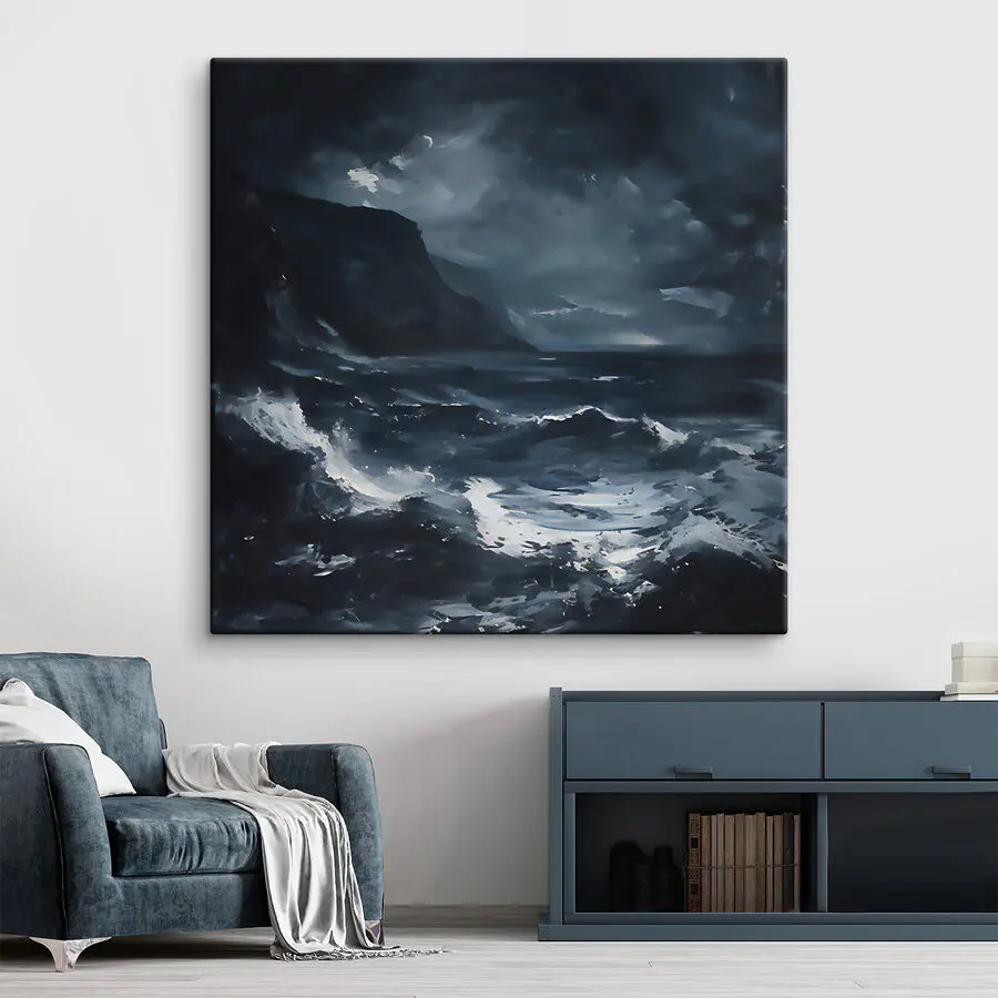 Czy kiedykolwiek czułeś, że wzburzone morze rezonuje z Twoją duszą? Rozsiądź się wygodnie na kanapie i pozwól, aby ten wydruk na płótnie “Dark Waves Crash Beneath Stormy Sky” przeniósł Cię do miejsca, w którym dramat natury spotyka się z uderzającym pięknem. Idealny do ożywienia pustej ściany, jest idealny dla ludzi, którzy kochają odrobinę burzliwych wydarzeń. Wyobraź sobie, że za każdym razem, gdy na nią spojrzysz, wciągają Cię potężne fale walczące pod ponurym niebem. To jak siedzenie w pierwszym rzędzie na surowej mocy natury, bez zamoczenia. Będziesz marzyć o epickich morskich przygodach, a może po prostu poczujesz wdzięczność za stabilny grunt pod stopami. Świetnie nadaje się do salonów, sypialni lub innych pomieszczeń wymagających odrobiny dzikiej natury. To więcej niż sztuka – to doświadczenie.