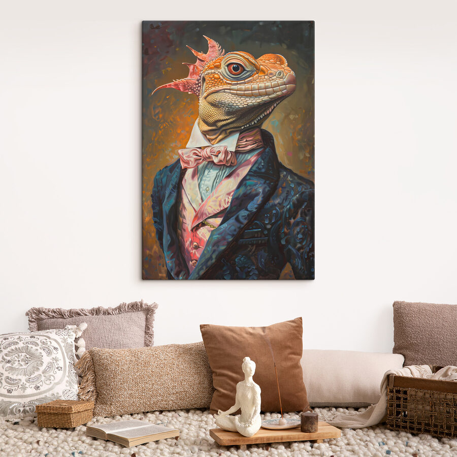 Zastanawiałeś się kiedyś, jak wyglądałaby jaszczurka w eleganckim garniturze? Ten wydruk na płótnie daje odpowiedź na to pytanie w zachwycający sposób. “Dapper Lizard in Elegant Attire” jest idealny dla każdego, kto kocha odrobinę kaprysu w swoim wystroju. Wyobraź sobie ten obraz wiszący na ścianie, który natychmiast stanie się tematem rozmów wśród przyjaciół i rodziny. Szczegóły są oszałamiające – od chrupkości jego koszuli po królewską kolczastość jego herbu. To tak, jakby ten jaszczur wyszedł prosto z wiktoriańskiej powieści! Niezależnie od tego, czy znajduje się w salonie, gabinecie, czy nawet w dziwacznym kącie, ten kawałek doda odrobinę osobowości i chichotu, gdziekolwiek się znajdzie. Świetny prezent dla wyjątkowego miłośnika sztuki!