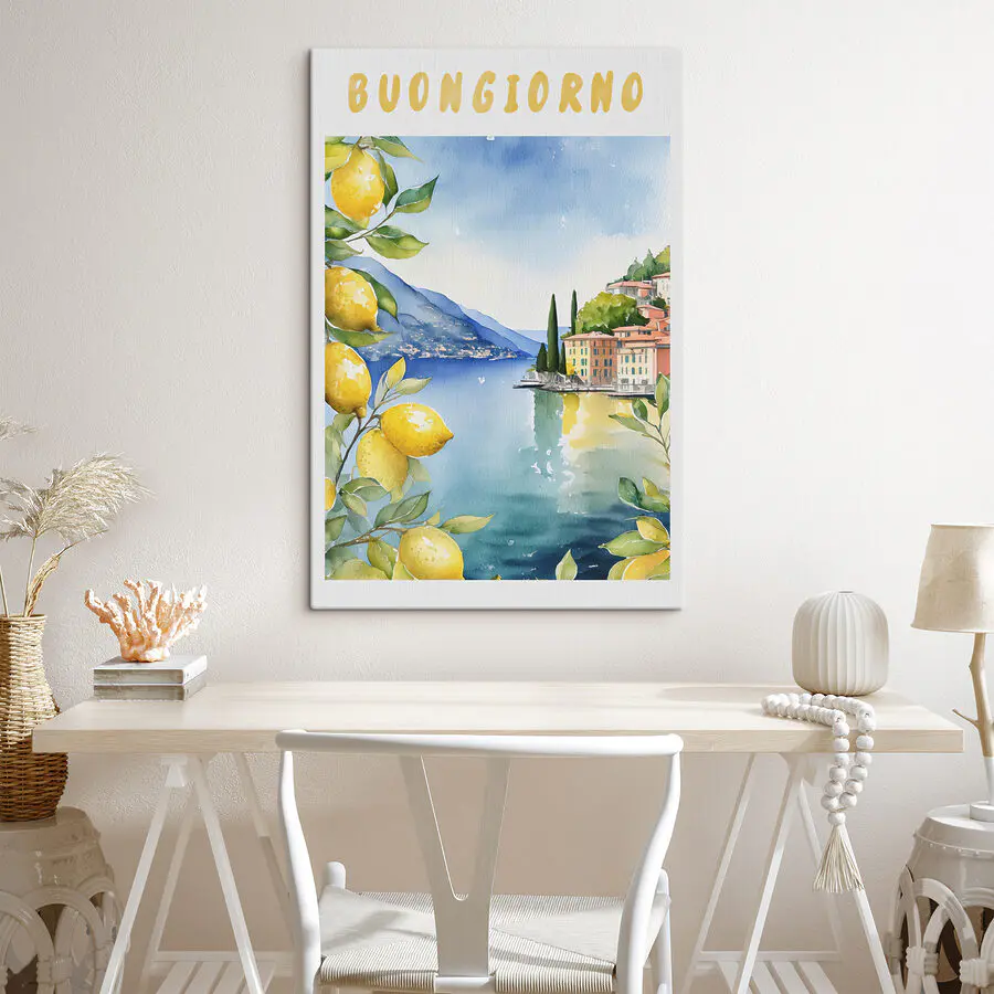 Urocze wioski, spokojne wody i żywe cytryny sprawiają, że jest to idealny dodatek do każdego pomieszczenia. Ma ten spokojny klimat, który sprawia, że czujesz się jak w małym raju – bez wychodzenia z domu!