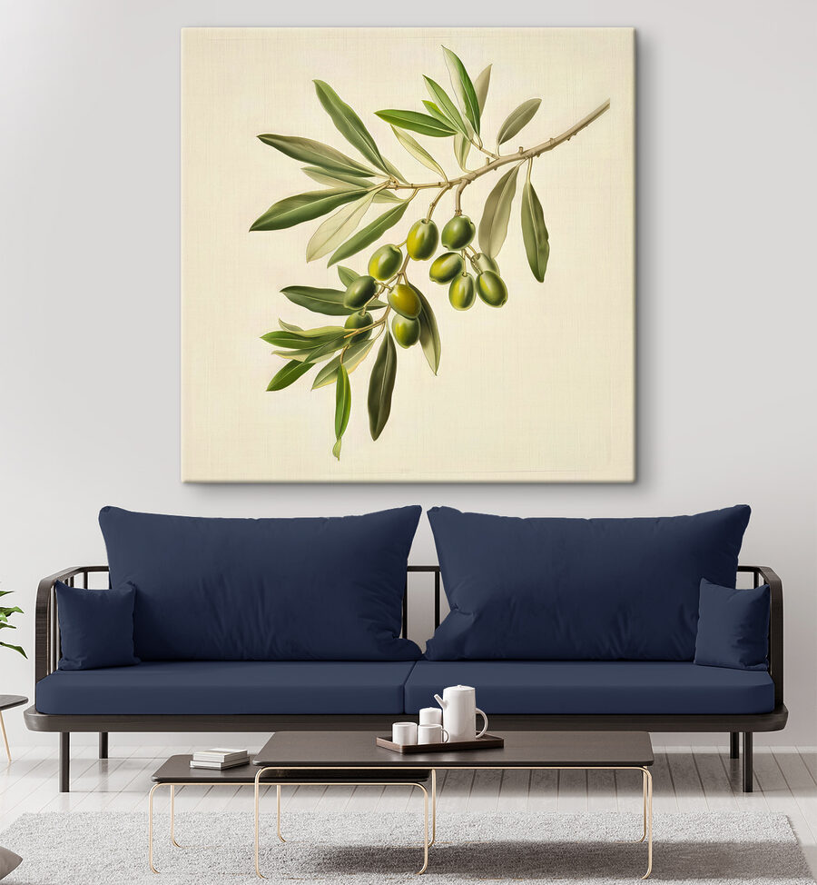 Przenieś kawałek natury do wnętrza dzięki temu pięknemu drukowi na płótnie przedstawiającemu gałązkę oliwną z bujnymi zielonymi oliwkami. To jak posiadanie spokojnego zakątka Morza Śródziemnego w swoim domu. Głęboka zieleń i delikatne krzywizny liści zachęcają do marzeń o degustacji świeżej oliwy z oliwek i ciepłej bryzie. Wyobraź sobie to piękno nad stołem w jadalni lub w przytulnym kąciku do czytania. Idealny do dodania odrobiny życia do każdej przestrzeni, jest początkiem rozmowy, nawet nie próbując. Twoje ściany będą Ci wdzięczne – podobnie jak Twoi goście!