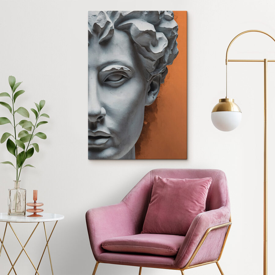 Jeśli szukasz wyjątkowego obrazu, sprawdź ten wspaniały wydruk na płótnie przedstawiający posąg twarzy mężczyzny. Jest głęboki, dramatyczny i z pewnością wywoła kilka interesujących rozmów! Wyobraź sobie ten obraz wiszący na ścianie – jest odważny, a jednocześnie spokojny. Skomplikowane szczegóły ekspresji rzeźby przyciągają uwagę, a ten kolor w tle? To jak wizualny wykrzyknik! Idealny do salonu, sypialni, a nawet biura. Taki przedmiot z pewnością doda odrobinę osobowości i wyrafinowania do każdej przestrzeni. Ponadto, jest idealny na te chwile, kiedy po prostu chcesz usiąść z filiżanką kawy i zatracić się w myślach.