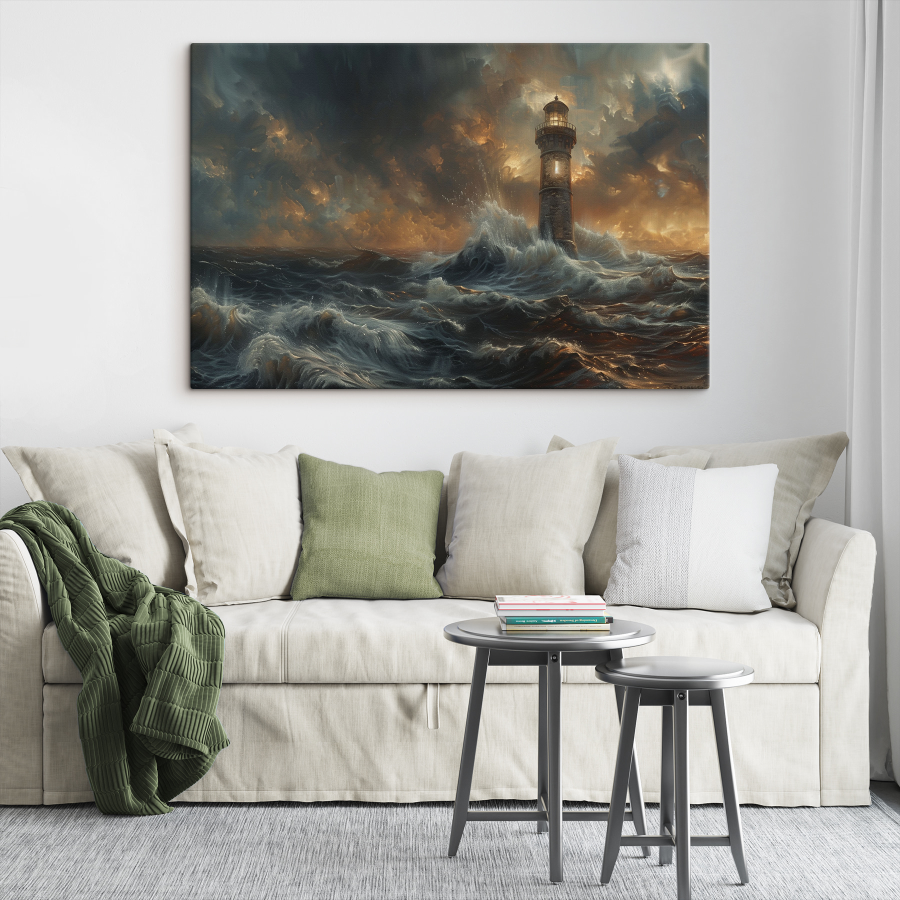 Potrzebujesz odrobiny dramatyzmu w swoim pokoju? Ten wydruk na płótnie, zatytułowany “Latarnia morska góruje nad wzburzonymi falami”, może być właśnie tym! Wyobraź to sobie – latarnia morska stojąca mocno na tle wściekłych fal i złowieszczych chmur. To nie tylko dzieło sztuki; to opowieść o odporności i nadziei. Idealny na te chwile, kiedy potrzebujesz wsparcia. Umieść go w swoim salonie, a każde spojrzenie będzie jak głęboki, świeży oddech oceanicznego powietrza. Dodatkowo, jest to świetny początek rozmowy. Zaufaj nam, będziesz marzyć o burzliwych morzach i odważnych duszach, które stawiają im czoła.