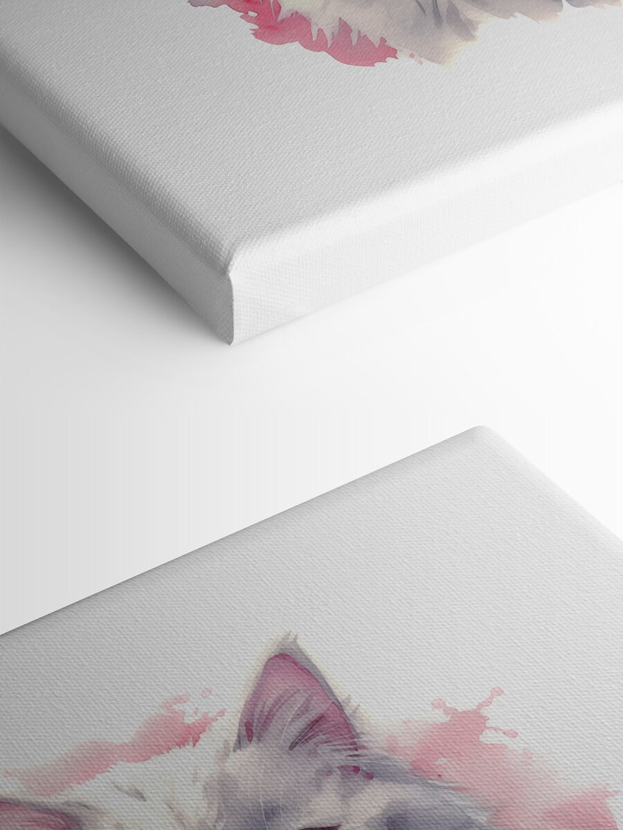 Oto dzieło sztuki na płótnie, które jest po prostu zbyt urocze, by go nie pokochać – pełen wdzięku biały kot w eleganckiej niebieskiej muszce. To tak, jakby twój koci przyjaciel wystroił się na wytworną kolację! Ten obraz wniesie odrobinę kaprysu i klasy do każdej przestrzeni. Wyobraź go sobie w swoim salonie, rozjaśniając dzień swoimi ujmującymi oczami i delikatnymi akwarelowymi odcieniami. Ponadto jest idealny dla miłośników kotów lub każdego, kto ceni sobie odrobinę zabawy w swoim wystroju. Wydaje się, że w każdej chwili może do ciebie mrugnąć, prawda? Prawdziwy początek rozmowy ze szczyptą elegancji.
