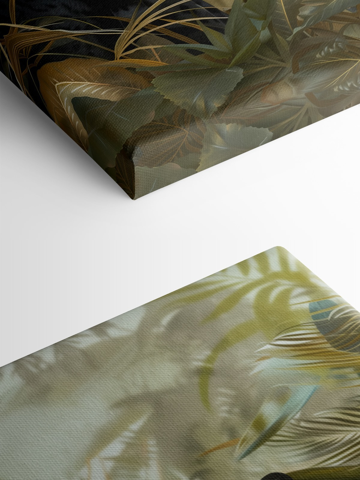 Czy kiedykolwiek marzyłeś o przeniesieniu odrobiny dzikiej przyrody do swojego salonu? Ten wydruk na płótnie “Black Panther with Yellow Eyes” to Twój bilet do dżungli. Dwie wspaniałe czarne pantery, uchwycone z tymi przeszywającymi żółtymi oczami, niemal czują się, jakby strzegły twojej przestrzeni. Płynnie wtapiają się w bujną zieleń, dodając odrobinę tajemniczości i ośmielę się powiedzieć… odrobinę przygody do twoich ścian.