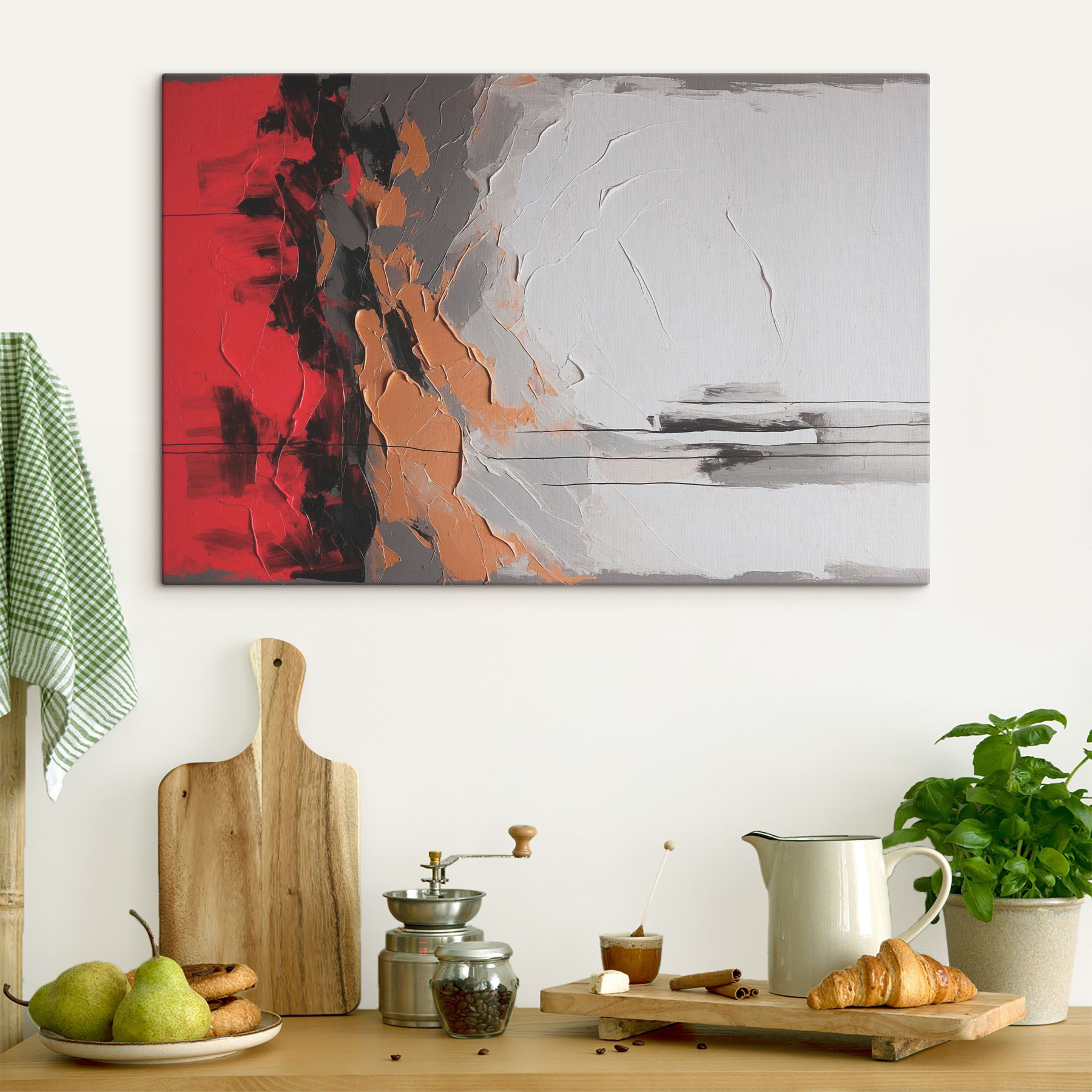 Odmień swoją przestrzeń dzięki temu efektownemu drukowi na płótnie, który łączy odcienie czerwieni, bieli i szarości w sposób, który jest zarówno nowoczesny, jak i nieco przytulny. Wyobraź sobie, że wchodzisz do swojego pokoju i witają Cię te odważne plamy koloru – to jak ciepły uścisk i plusk energii naraz. Idealne na pustą ścianę, która aż prosi się o uwagę, prawda? Każde pociągnięcie pędzla opowiada historię, zachęcając do ciekawości i pobudzając do rozmowy. Niezależnie od tego, czy jest to ożywione spotkanie, czy spokojny wieczór z książką, ten obraz bez trudu wprowadzi odpowiedni nastrój. Idealny dla miłośników sztuki lub każdego, kto po prostu chce, aby w domu było ciekawie!