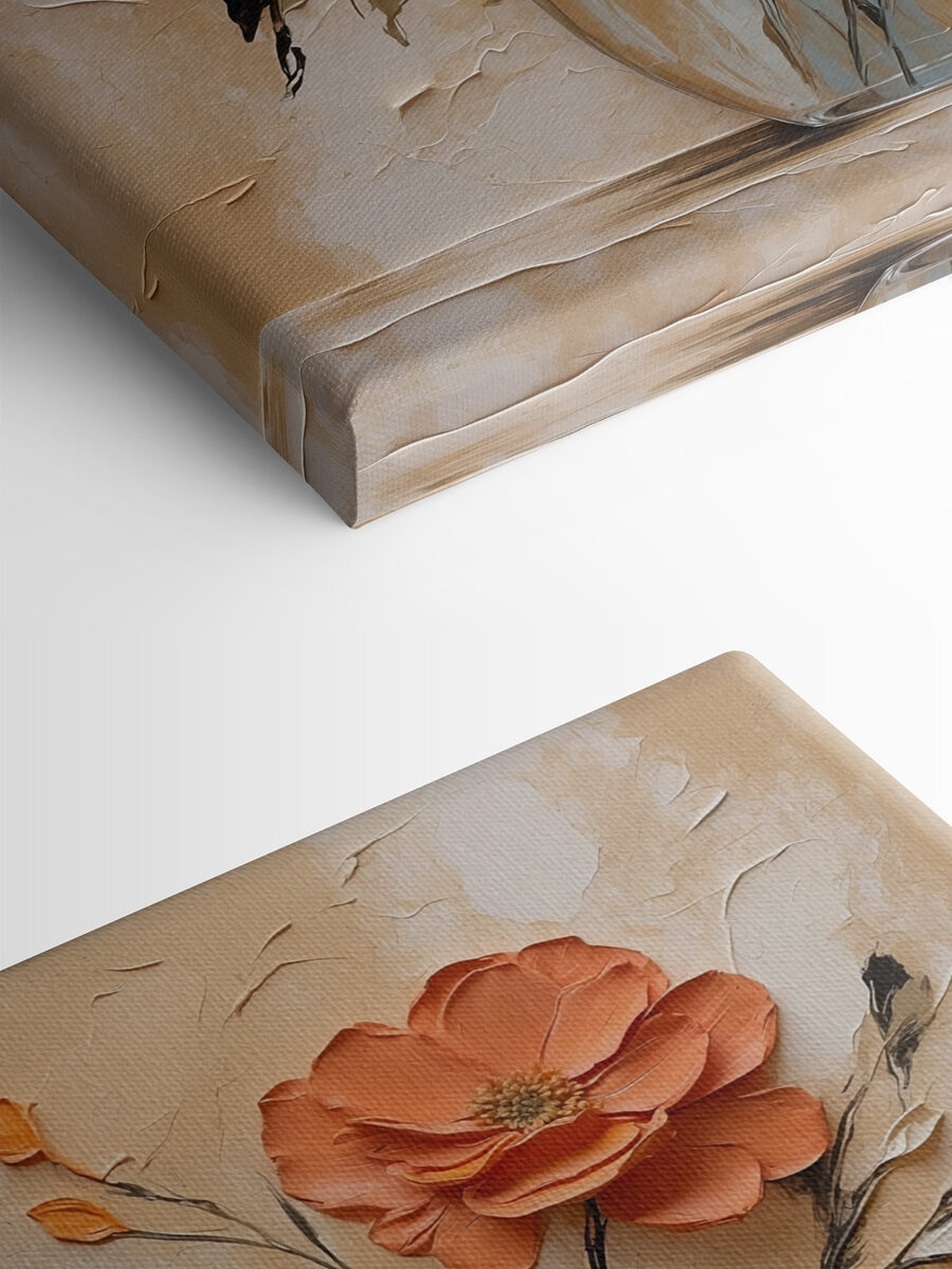 Wyobraź sobie, że wchodzisz do swojego salonu i wita Cię feeria barw, tak orzeźwiająca jak wiosenny poranek. Ten “Obraz Painting of Flowers in a Vase” to nie tylko dzieło sztuki – to osobowość, która czeka, aby rozjaśnić Twoją przestrzeń. Odważne pomarańcze i delikatne biele łączą się jak starzy przyjaciele, oferując zarówno ciepło, jak i elegancję. Wyobraź sobie: ponury poniedziałek, popijasz kawę, rzucasz okiem na to arcydzieło i voilà – natychmiastowa poprawa nastroju. To jak bukiet, który nigdy nie więdnie, zawsze dopingując twoje dobre wibracje. Idealny na każdą ścianę pragnącą odrobiny dodatkowej radości.