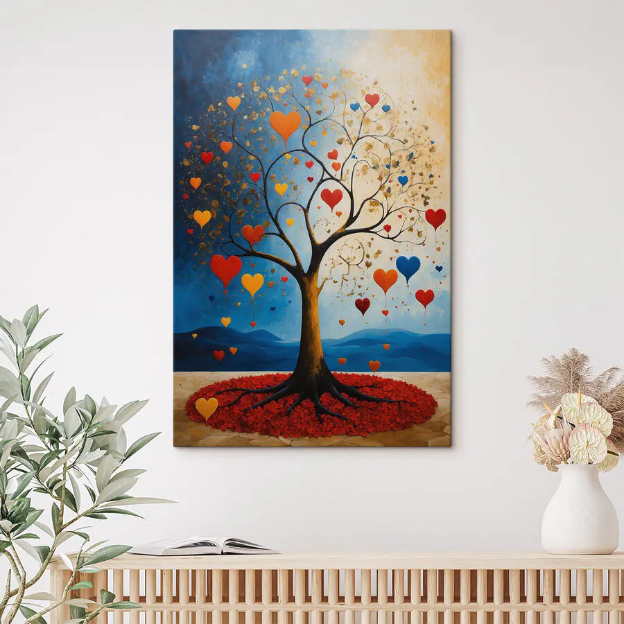Poznaj “Obraz Tree with Hearts”, zachwycający obraz, który sprawi, że Twoja ściana poczuje się jak w przytulnym uścisku. Ta grafika jest uroczym połączeniem natury i miłości, z żywymi sercami trzepoczącymi z gałęzi jak kolorowe święto. Wyobraź sobie, że wchodzisz do swojego pokoju i czujesz tę ciepłą, rozmytą atmosferę – jak na spotkaniu przyjaciół, gdzie śmiech unosi się w powietrzu. Jest to element, który pobudza do rozmów, a może nawet kilku uśmiechów. Idealny na pustą ścianę lub gdziekolwiek, gdzie przydałaby się odrobina radości. To coś więcej niż dekoracja; to małe przypomnienie o szerzeniu miłości!