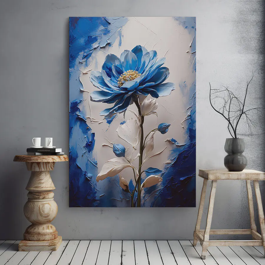 Odmień każde pomieszczenie dzięki urzekającemu obrazowi “Obraz Blue Flower with White Leaves”. Ten oszałamiający kawałek wybucha żywymi błękitami i miękkimi bielami, tworząc piękny punkt centralny. Wyobraź sobie, że wchodzisz do swojej przestrzeni, witany przez ten czarujący kwiat, który natychmiast podnosi na duchu. To tak, jakby mieć urok natury bezpośrednio na ścianie – bez potrzeby posiadania zielonego kciuka. Sama tekstura może wywołać rozmowę – każdy będzie pytał: “Czekaj, czy to obraz czy rzeźba?”. Idealne do przytulnych zakątków lub odważnych ścian, chodzi o znalezienie tego słodkiego miejsca artyzmu.