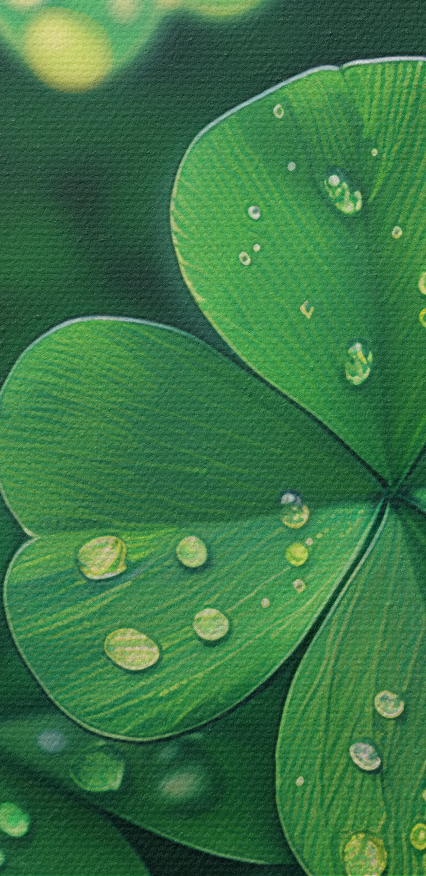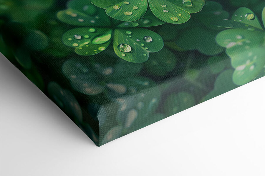 Przekształć każdą ścianę w spokojną ucieczkę dzięki temu czarującemu wydrukowi na płótnie przedstawiającemu żywy pęk koniczyny, z których każda ozdobiona jest drobnymi kropelkami, które oddają istotę natury. Wyobraź sobie, że wisi w przytulnym zakątku – prawie tak, jakbyś przyniósł kawałek świeżego powietrza. Bogata zieleń i błyszczące kropelki wprowadzają świeży nastrój, sprawiając, że czujesz się, jakbyś spacerował po zroszonej łące w wiosenny poranek. Idealna dla tych, którzy kochają odrobinę naturalnego uroku, ta grafika szepcze prostotę i odmłodzenie, zapraszając delikatne uśmiechy i spokojne chwile do codziennego życia. Kto nie chciałby odrobiny natury każdego dnia?