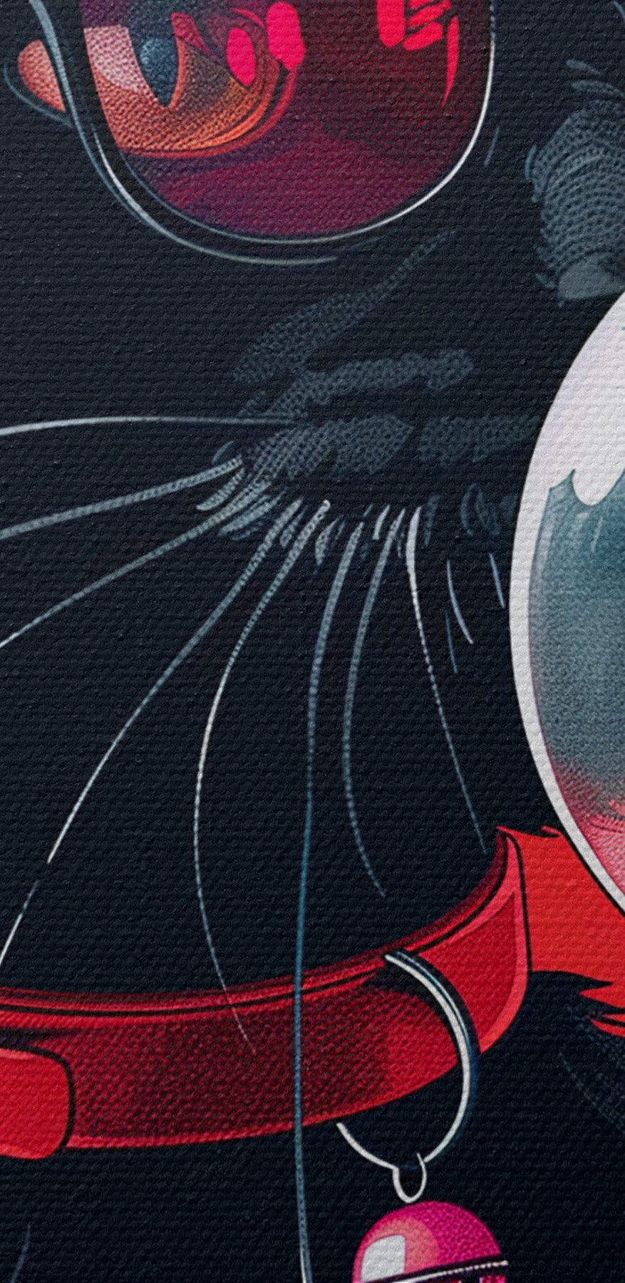 Wnieś odrobinę zabawy na swoją ścianę dzięki temu dziwacznemu drukowi na płótnie przedstawiającemu fajnego kota w stylowych okularach i dmuchającego bańkę! Idealny dla każdego, kto potrzebuje odrobiny humoru w swoim życiu. Odważne czerwone tło dodaje żywego kopa, który może rozjaśnić każdą przestrzeń. Wyobraź sobie tego figlarnego kota wiszącego w twoim salonie, wywołującego uśmiechy i chichoty gości. To nie tylko sztuka, ale także sposób na rozpoczęcie rozmowy. Poza tym, kto nie chciałby skorzystać z porady dekoratorskiej od kota, który najwyraźniej wie, jak się wyluzować? Idealny dla miłośników kotów i każdego, kto lubi odrobinę kaprysu w swoim wystroju!