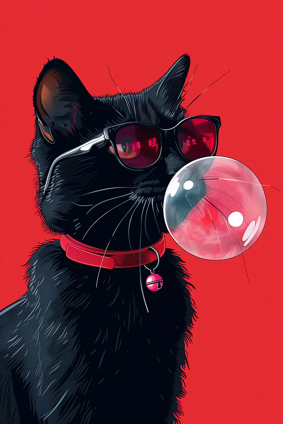 Wnieś odrobinę zabawy na swoją ścianę dzięki temu dziwacznemu drukowi na płótnie przedstawiającemu fajnego kota w stylowych okularach i dmuchającego bańkę! Idealny dla każdego, kto potrzebuje odrobiny humoru w swoim życiu. Odważne czerwone tło dodaje żywego kopa, który może rozjaśnić każdą przestrzeń. Wyobraź sobie tego figlarnego kota wiszącego w twoim salonie, wywołującego uśmiechy i chichoty gości. To nie tylko sztuka, ale także sposób na rozpoczęcie rozmowy. Poza tym, kto nie chciałby skorzystać z porady dekoratorskiej od kota, który najwyraźniej wie, jak się wyluzować? Idealny dla miłośników kotów i każdego, kto lubi odrobinę kaprysu w swoim wystroju!