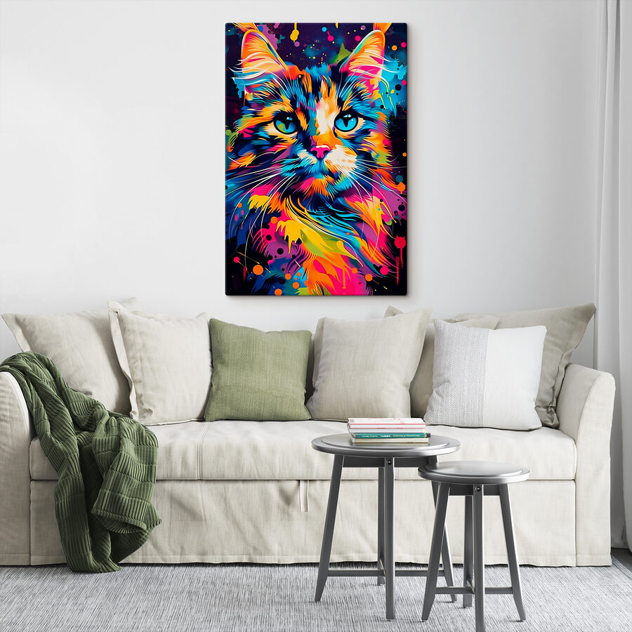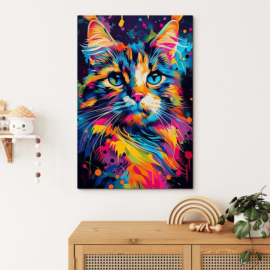 Sprawdź ten wydruk na płótnie – “Obraz s39314”. Szczerze mówiąc, wygląda to tak, jakby eksplodował kalejdoskop i przeszedł przez niego kot. Żywa mieszanka kolorów na tle jest po prostu uderzająca, prawie wydaje się, że kot wpatruje się prosto w twoją duszę (w najbardziej zachwycający sposób). Idealny do dodania koloru do każdej przestrzeni, to płótno po prostu krzyczy osobowością. Wyobraź sobie tę feerię barw w swoim salonie lub gabinecie, która natychmiast poprawia nastrój za każdym razem, gdy przechodzisz obok… To jak codzienna terapia sztuką! Niezależnie od tego, czy jesteś miłośnikiem kotów, fanem odważnych dekoracji, czy po prostu cenisz sobie wyjątkową sztukę, ten kawałek robi wrażenie. Co więcej, Twoi goście z pewnością będą to komentować – “Skąd masz to niesamowite dzieło?” będą pytać. Przygotuj się na komplementy!