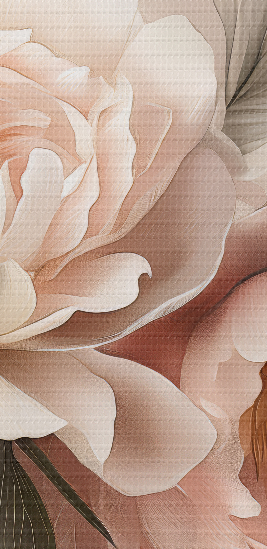 Powłoka winylowa to cienka warstwa PVC nałożona na podłoże z włókniny. Obecność winylu sprawia, że tapeta jest odporna na uszkodzenia, umożliwia łatwe czyszczenie wilgotną gąbką i nadaje powierzchni wytłaczaną teksturę, przypominającą lnianą tkaninę.