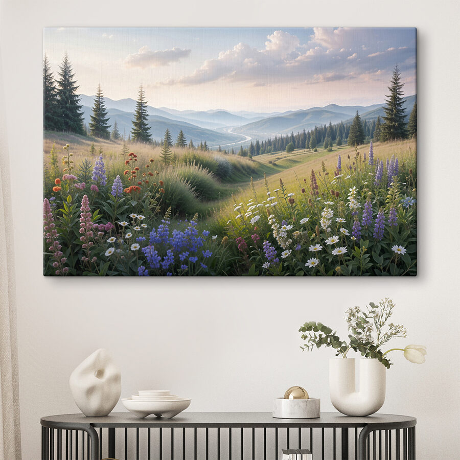 Wyobraź sobie, że wchodzisz do przestrzeni, która przypomina słoneczną łąkę. Ten obraz “Obraz Field of Flowers and Trees” właśnie to robi, przenosząc zewnętrze do wnętrza. Pełen żywych kolorów, oddaje istotę spokojnej ucieczki. Gdy kwiaty kołyszą się na delikatnym wietrze, nie sposób nie poczuć ogarniającego ich spokoju. Idealnie nadaje się do rozjaśnienia salonu lub stworzenia przytulnego kącika do czytania. Wyobraź sobie, jak zwijasz się z książką, a grafika szepcze uspokajające historie o naturze. Czyż nie jest cudownie mieć kawałek spokoju w domu?