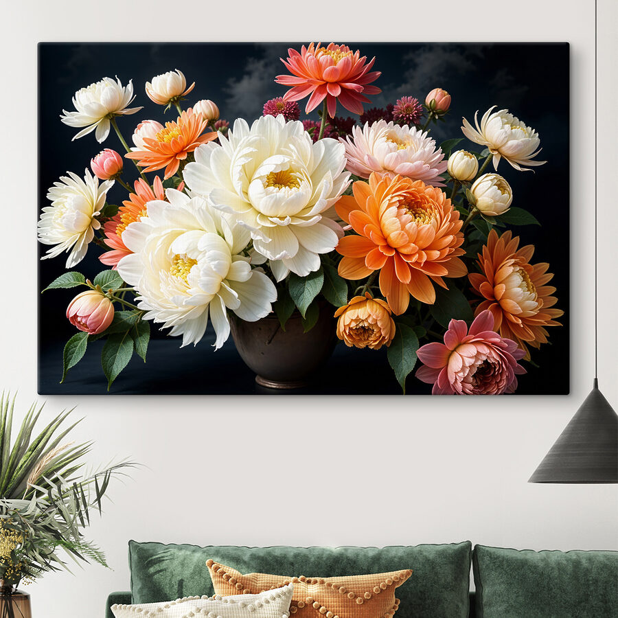 Kwiaty wydają się niemal tańczyć na płótnie, prawda? Kwiaty są uchwycone w tak żywych szczegółach, że można przyłapać się na codziennym podziwianiu ich. A co najlepsze? Nie potrzebujesz zielonego kciuka, aby ten kwiatowy wyświetlacz wyglądał świeżo. Niezależnie od tego, czy interesujesz się sztuką, lubisz romansować z kwiatami, czy po prostu pragniesz popularnego, stylowego wystroju, to dzieło spełnia wszystkie wymagania. To jak uchwycenie chwili czystego, promiennego piękna… uwiecznionego na płótnie.