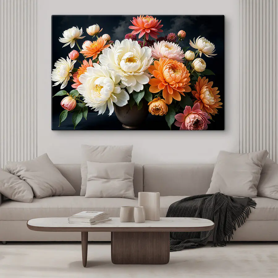 Kwiaty wydają się niemal tańczyć na płótnie, prawda? Kwiaty są uchwycone w tak żywych szczegółach, że można przyłapać się na codziennym podziwianiu ich. A co najlepsze? Nie potrzebujesz zielonego kciuka, aby ten kwiatowy wyświetlacz wyglądał świeżo. Niezależnie od tego, czy interesujesz się sztuką, lubisz romansować z kwiatami, czy po prostu pragniesz popularnego, stylowego wystroju, to dzieło spełnia wszystkie wymagania. To jak uchwycenie chwili czystego, promiennego piękna… uwiecznionego na płótnie.