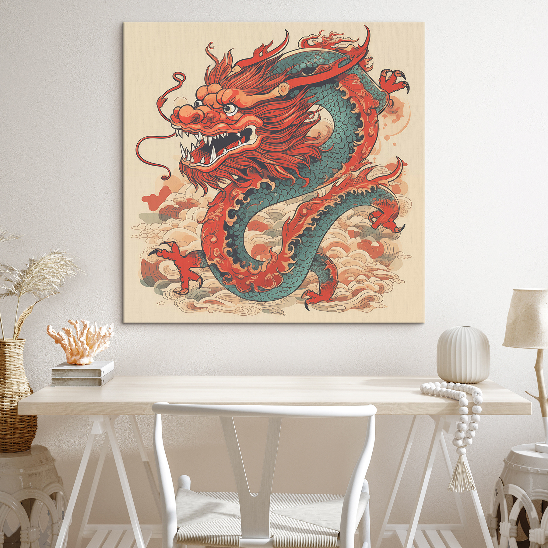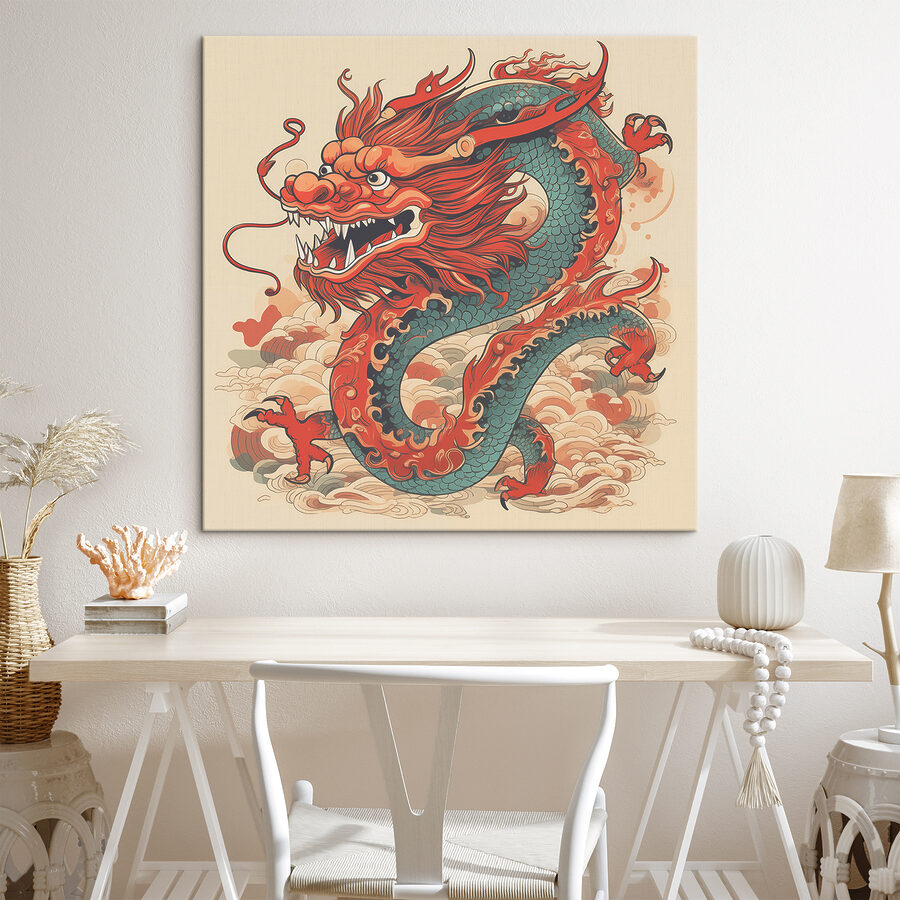 Ten wydruk na płótnie przedstawiający smoka z długim ogonem jest majestatycznym dziełem, które krzyczy osobowością! Jego żywe kolory i zaciekła ekspresja sprawią, że goście zrobią podwójne spojrzenie. Wyobraź sobie, że to piękno wisi w twoim salonie, bez wysiłku przekształcając atmosferę ze zwykłej w niezwykłą. To tak, jakby mieć mistyczne stworzenie na ścianie, gotowe do wywołania rozmów, a może nawet marzeń o epickich przygodach. Ponadto, jeśli ktoś kiedykolwiek będzie potrzebował odrobiny inspiracji, ten smok ma cię w garści. Idealny dla miłośników wyjątkowych dekoracji, którzy lubią odrobinę kaprysu i śmiałości!