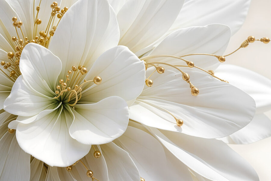 Wyobraź sobie, że wchodzisz do pokoju, w którym elegancja spotyka się z naturą. Obraz “Obraz Elegance in White and Beads” właśnie to robi! Ten oszałamiający obraz przedstawia bujne białe płatki, które wydają się kwitnąć tuż przy płótnie, wciągając cię w swoje spokojne piękno. To jak posiadanie małego ogrodu w domu, ale bez konewki.