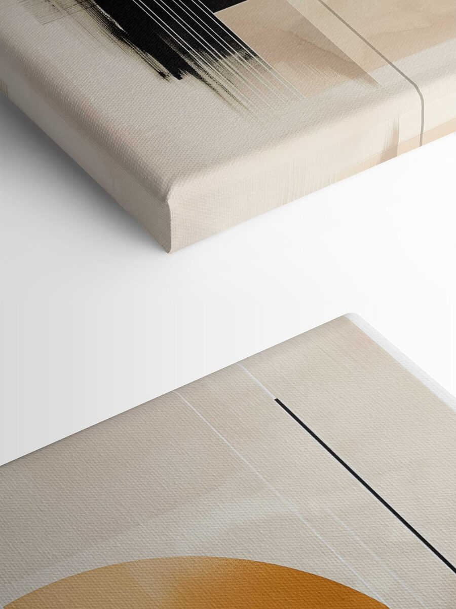 Dodatkowo, mieszanka delikatnego beżu i żywego pomarańczu pięknie współgra z naturalnym światłem, tworząc to ciągle zmieniające się dzieło sztuki. W jednej chwili wydaje się spokojny i pogodny, a w następnej jest jak wybuch kreatywności bezpośrednio na ścianie. Wyobraź sobie, że przytulasz się pod nim z dobrą książką i filiżanką herbaty. To mały kawałek nieba sztuki nowoczesnej – idealny dla każdego, kto chce wprowadzić odrobinę abstrakcyjnego piękna do swojego codziennego życia.