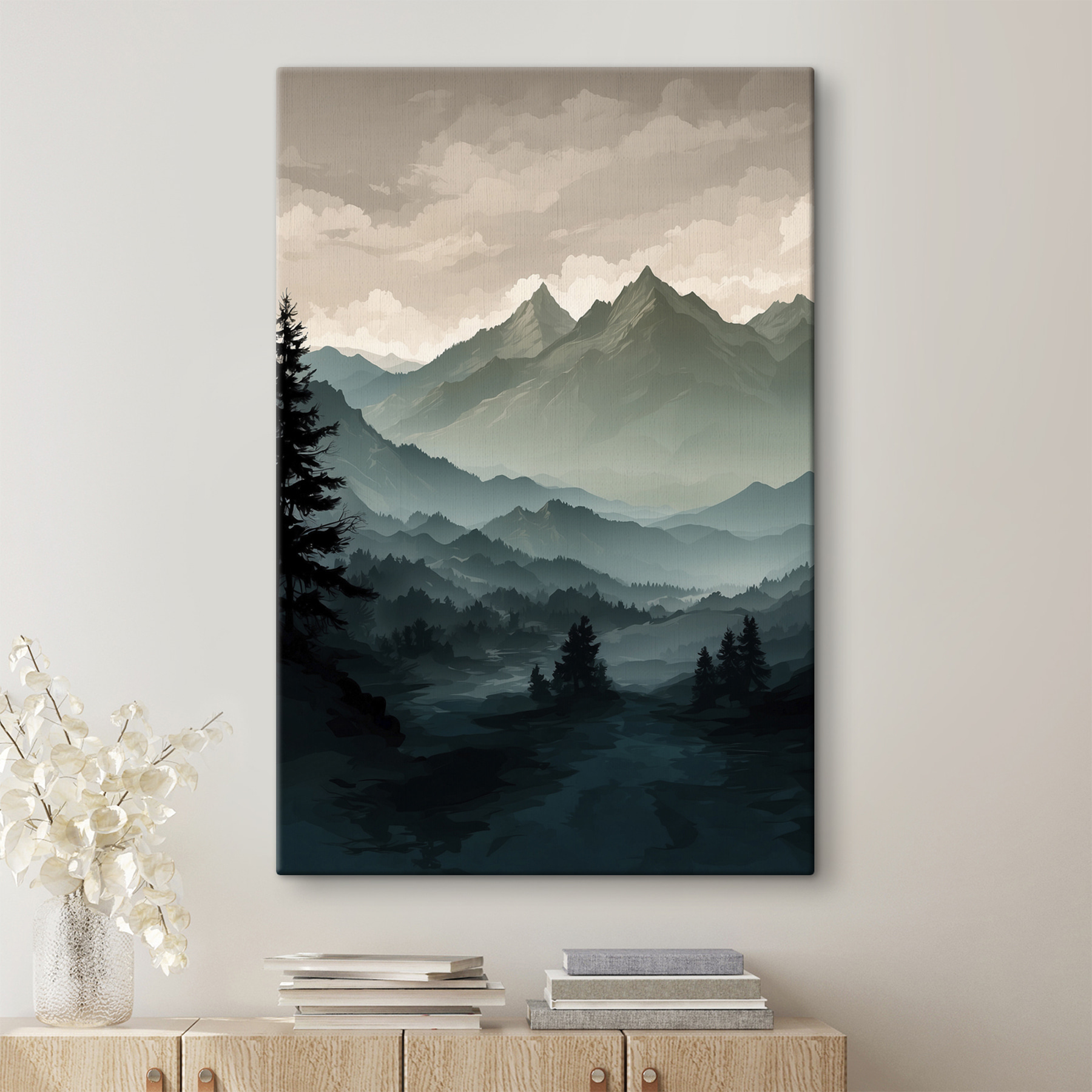 Sprawdź ten oszałamiający kawałek – Obraz s39587! Ma te nastrojowe leśne wibracje z mglistymi górami toczącymi się w oddali. Wyobraź sobie, że wisi w Twoim salonie… Całkowicie przytulny klimat domku, prawda? Subtelne odcienie zieleni i zacienione drzewa przywodzą na myśl poranne wędrówki, gdy świat wciąż się budzi. To tak, jakby mieć kawałek natury bezpośrednio na ścianie. Idealny dla każdego, kto potrzebuje odpoczynku od miejskiego zgiełku lub po prostu kocha estetykę natury. Poważnie, ten obraz przyciąga wzrok.