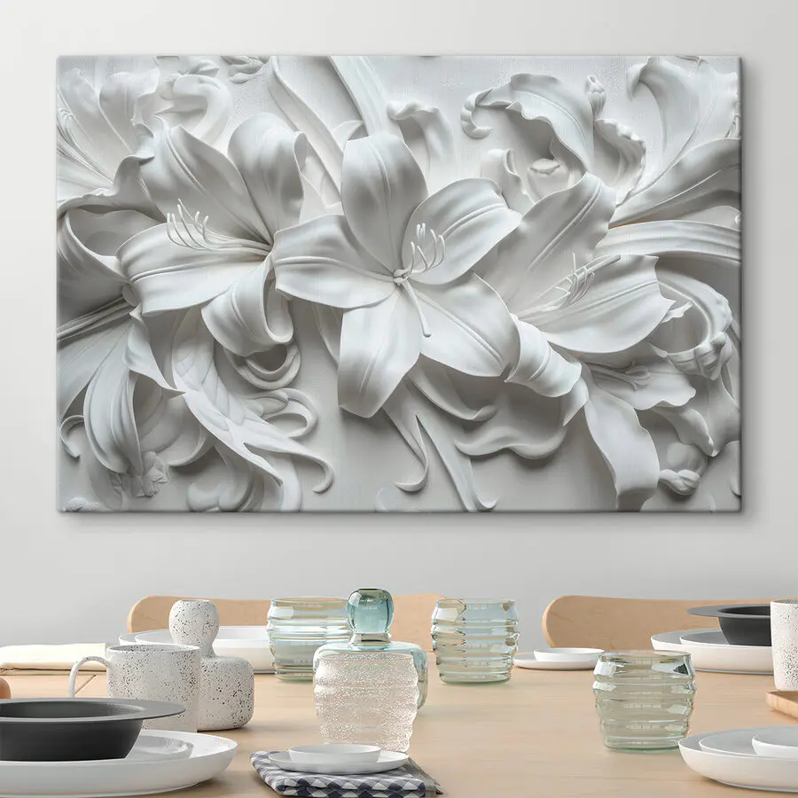 Odmień każdą przestrzeń dzięki temu wspaniałemu drukowi na płótnie, przedstawiającemu delikatny biały kwiat wylegujący się na białej powierzchni. To piękne połączenie prostoty i elegancji, które sprawi, że każdy zatrzyma się i odetchnie głębiej. Wyobraź sobie to dzieło wiszące w przytulnym zakątku, może nawet obok parującej filiżanki kawy. Sposób, w jaki światło odbija się od jego subtelnych niuansów, może natychmiast podnieść nastrój pomieszczenia. Idealna dla tych, którzy cenią sobie subtelne piękno, ta grafika szepcze wyrafinowanie, zapraszając jednocześnie ciepłe, uspokajające wibracje. Jest jak delikatny uścisk dla ścian.