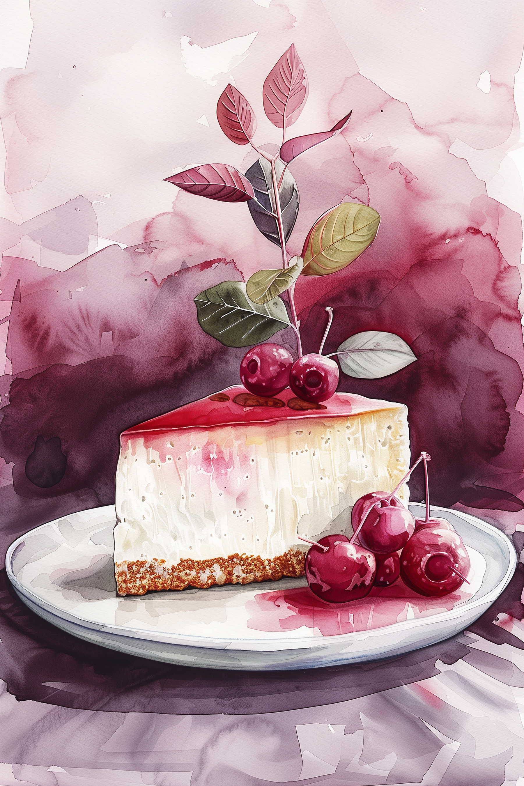 Masz ochotę na słodycze? “Obraz s39700” to idealny obraz, który doda odrobinę marzeń i pyszności do Twojej przestrzeni! Ta urocza grafika przedstawia przepyszny kawałek sernika z błyszczącymi wiśniami – wygląda prawie tak dobrze, że można go zjeść… ale może nie próbuj tego!