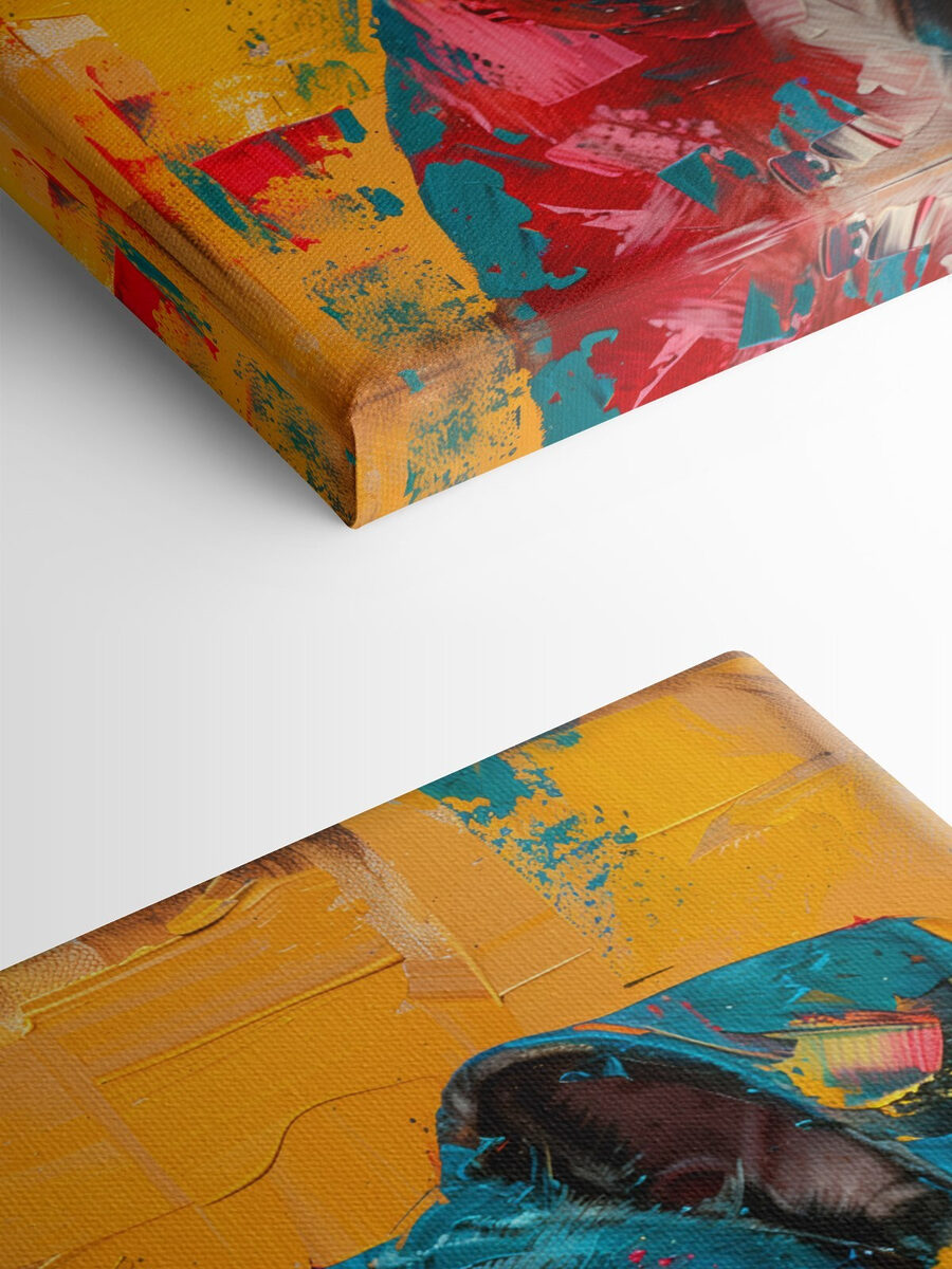 Jeśli klimat twojej przestrzeni wymaga ożywienia lub rozpoczęcia rozmowy, ta grafika jest dla ciebie. Odważne kolory – czerwienie, błękity, żółcie – tańczą razem i wydobywają zabawnego ducha psa. Idealny dla miłośników zwierząt, entuzjastów sztuki lub każdego, kto po prostu potrzebuje dodatkowej iskierki radości w swoim domu. To dzieło, które nie tylko wisi na ścianie – staje się częścią twojego dnia, twojej historii.