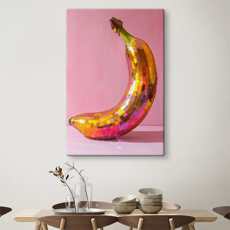 Poznaj zachwycający obraz “Colorful Mirror Banana”. Ten przyciągający wzrok wydruk na płótnie to nie tylko sztuka, ale także sposób na rozpoczęcie rozmowy. Dzięki zabawnemu wzornictwu na delikatnym różowym tle, dodaje odrobinę kaprysu do każdego pomieszczenia. Wyobraź sobie, że wchodzisz do swojego pokoju i witasz się z tym żywym bananem, którego błyszczące mozaikowe płytki mienią się jak mała dyskoteka. To idealne rozwiązanie dla tych, którzy uwielbiają łączyć zabawę ze stylem. Niezależnie od tego, czy wisi w przytulnej kuchni, czy w jasnym salonie, wywołuje uśmiech i szczyptę osobowości. Kto by pomyślał, że banan może być tak szykowny? Idealny do rozjaśnienia codziennego życia!