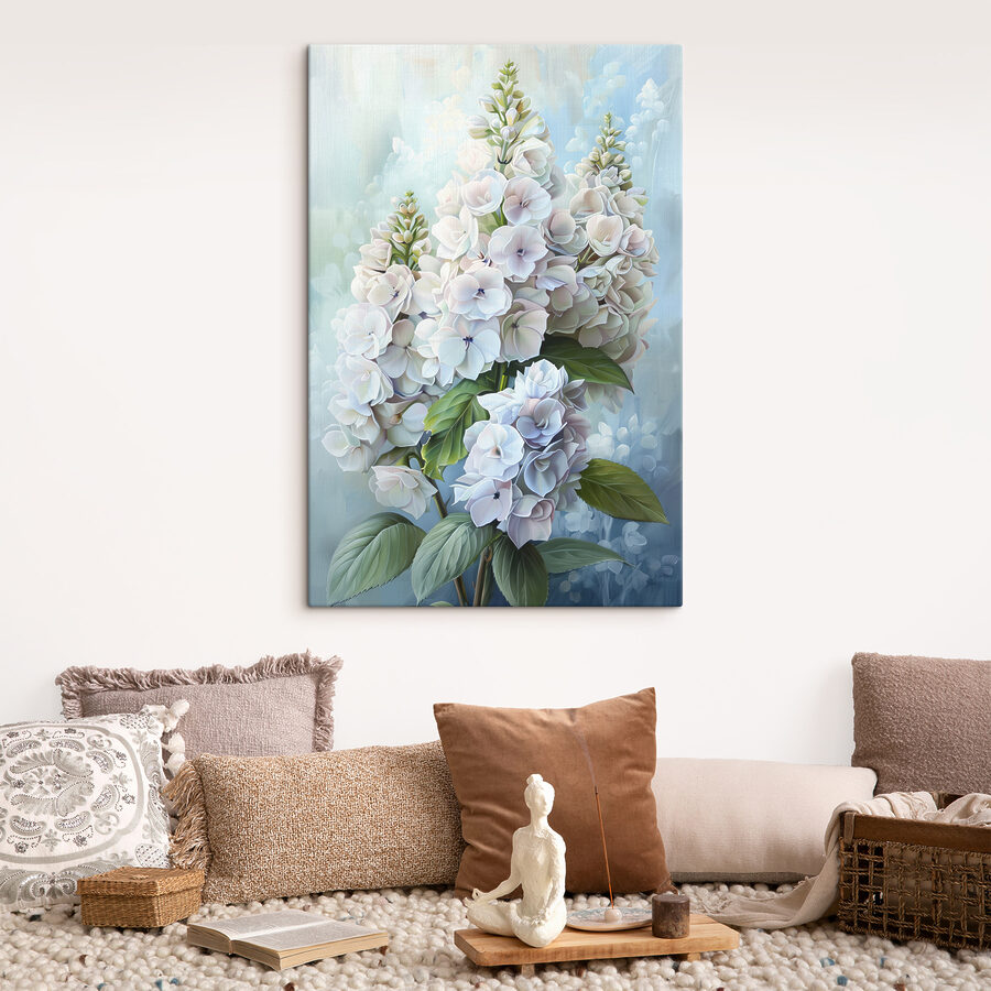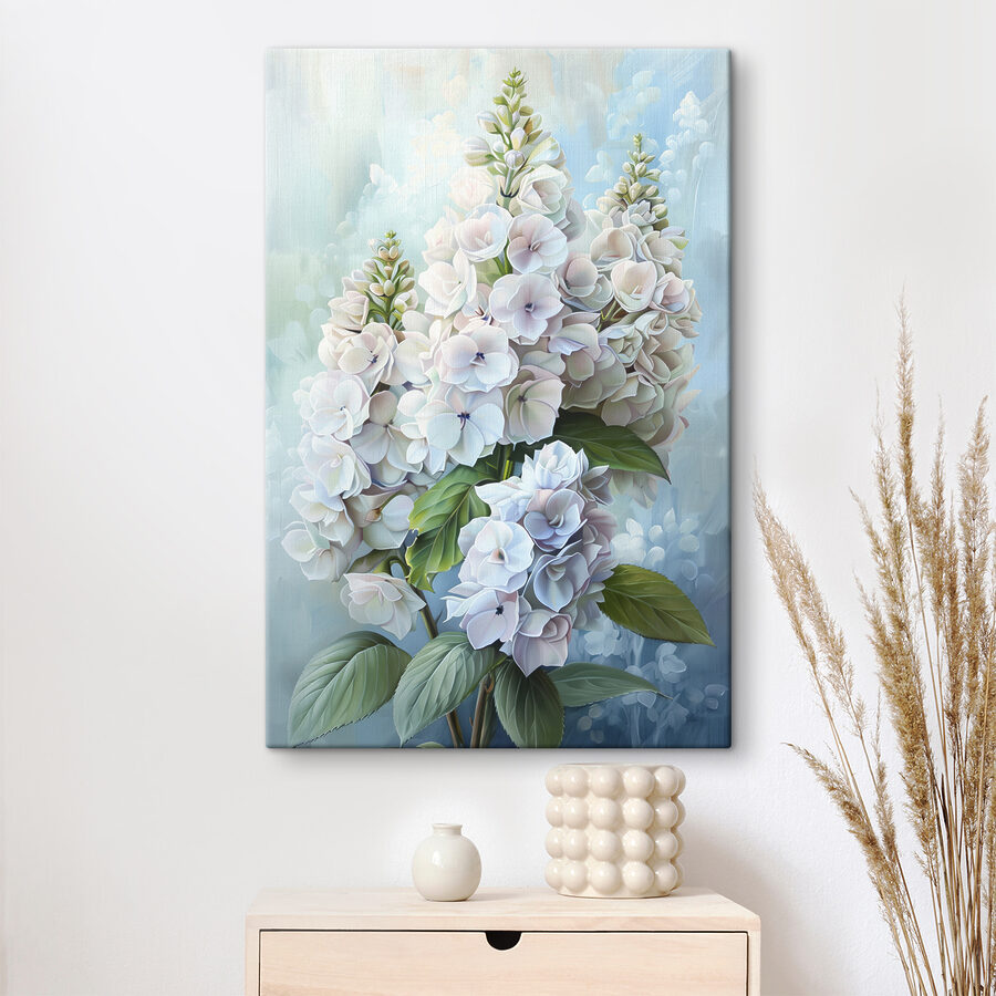 Można niemal poczuć delikatny szelest liści i miękkie płatki ocierające się o siebie. Kolory są uspokajające, a delikatne biele i zielenie łączą się ze sobą w tańcu, który wydaje się niemal hipnotyzujący. Idealny do słonecznego pokoju lub przytulnego kącika do czytania, gdzie można zatracić się w dobrej książce otoczonej tymi spokojnymi kwiatami.