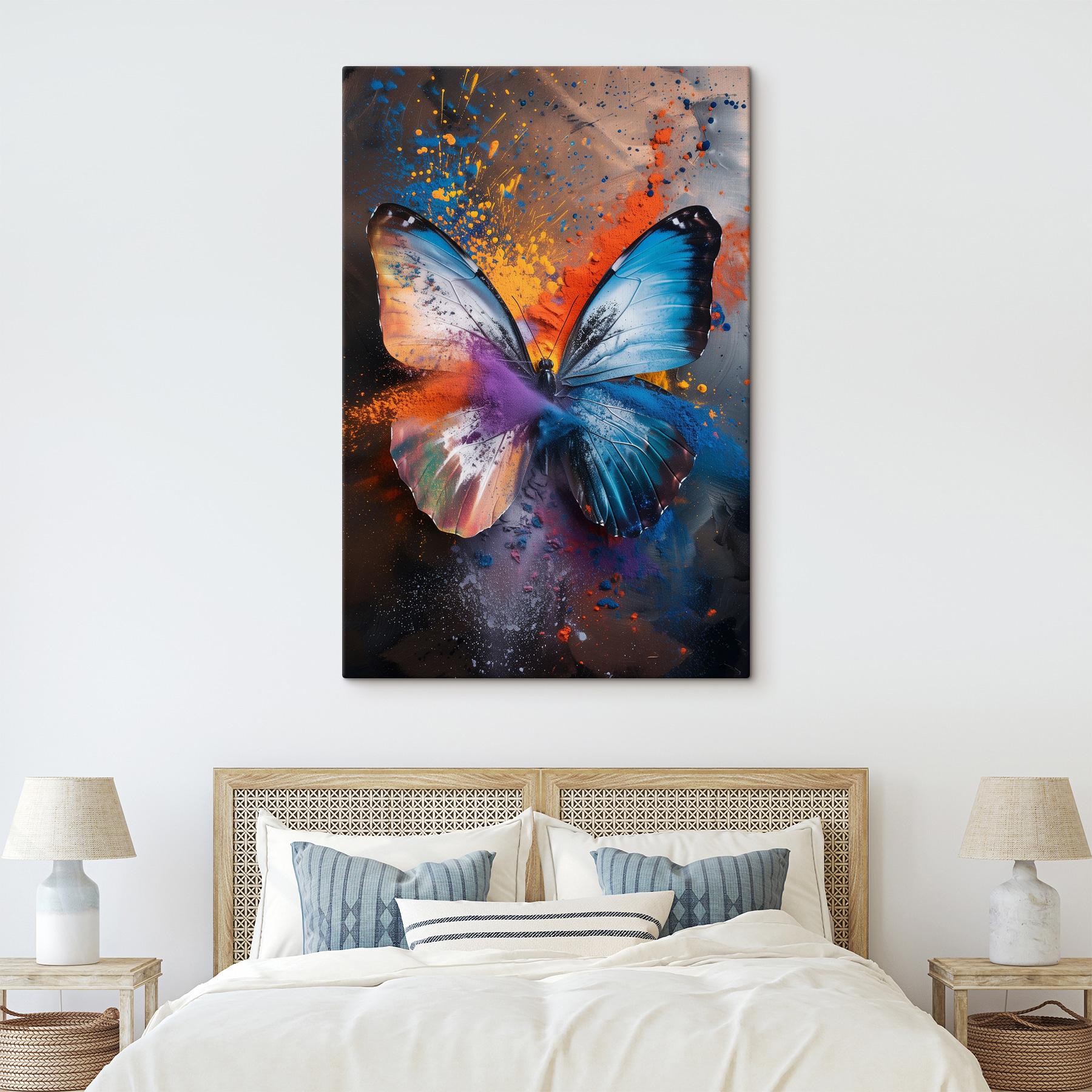 Energia i ruch uchwycone w tym dziele są po prostu niesamowite. Trudno zdecydować, który pokój bardziej zasługuje na to piękno, salon czy sypialnia – dlaczego nie oba? Drobne szczegóły na skrzydłach i delikatny chaos rozpryskiwanej farby sprawiają, że jest to nieskończenie fascynujące. Każde spojrzenie odkrywa coś nowego. Niezależnie od tego, czy jesteś fanem sztuki abstrakcyjnej, kochasz zwierzęta, czy po prostu chcesz czegoś popularnego i modnego, ten obraz spełnia wszystkie wymagania.