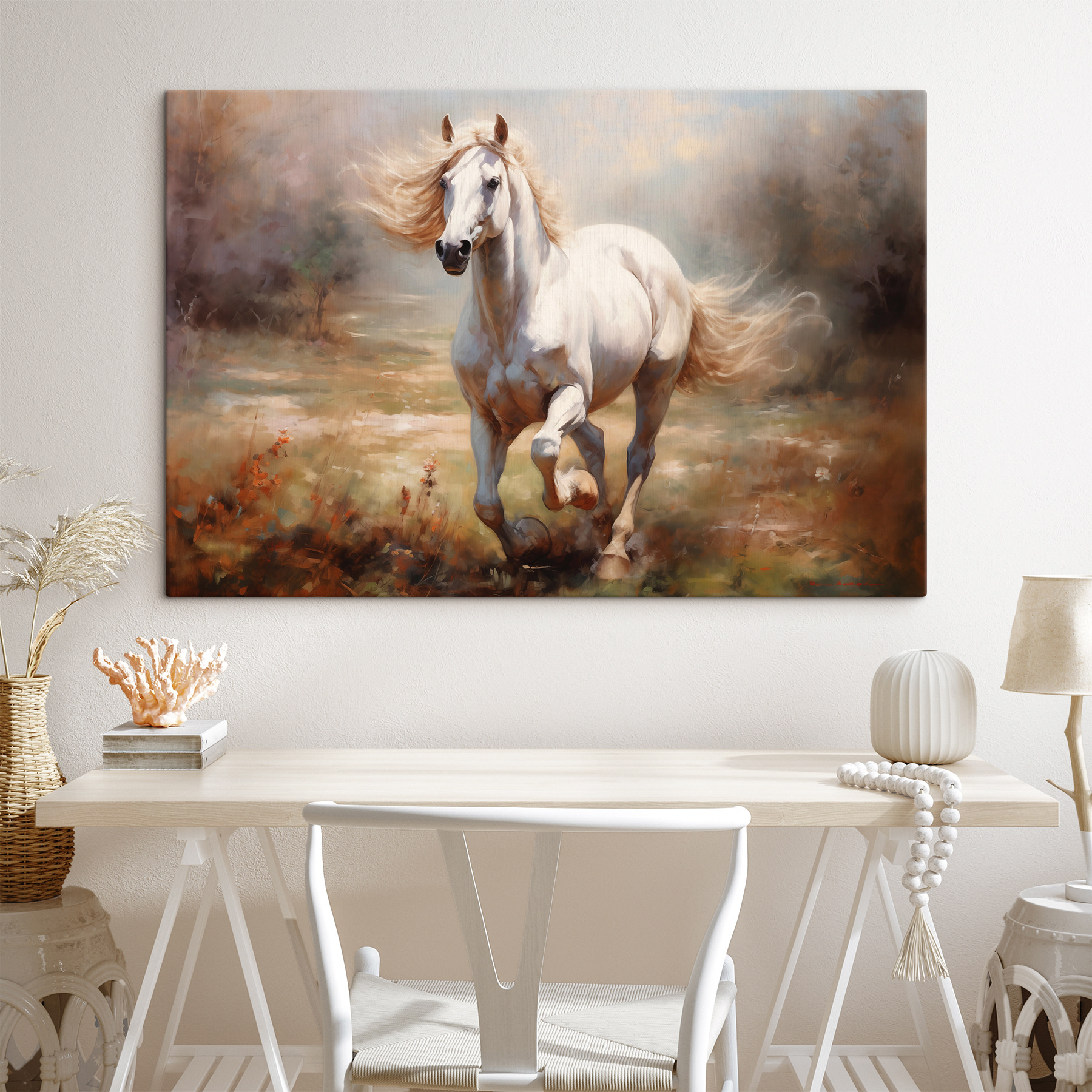 Poznaj “Obraz s39818” – totalną atrakcję dla Twojej przestrzeni! Wyobraź sobie tego wspaniałego konia galopującego swobodnie przez zamglone pola… To jak scena prosto ze snu. To dzieło wprowadza odrobinę dzikiej natury do wnętrza, idealne dla każdego miłośnika zwierząt lub kogoś, kto pragnie odrobiny wiejskiego uroku. Kunszt wykonania jest niesamowity – można niemal usłyszeć stukot końskich kopyt i poczuć wiatr w jego grzywie.