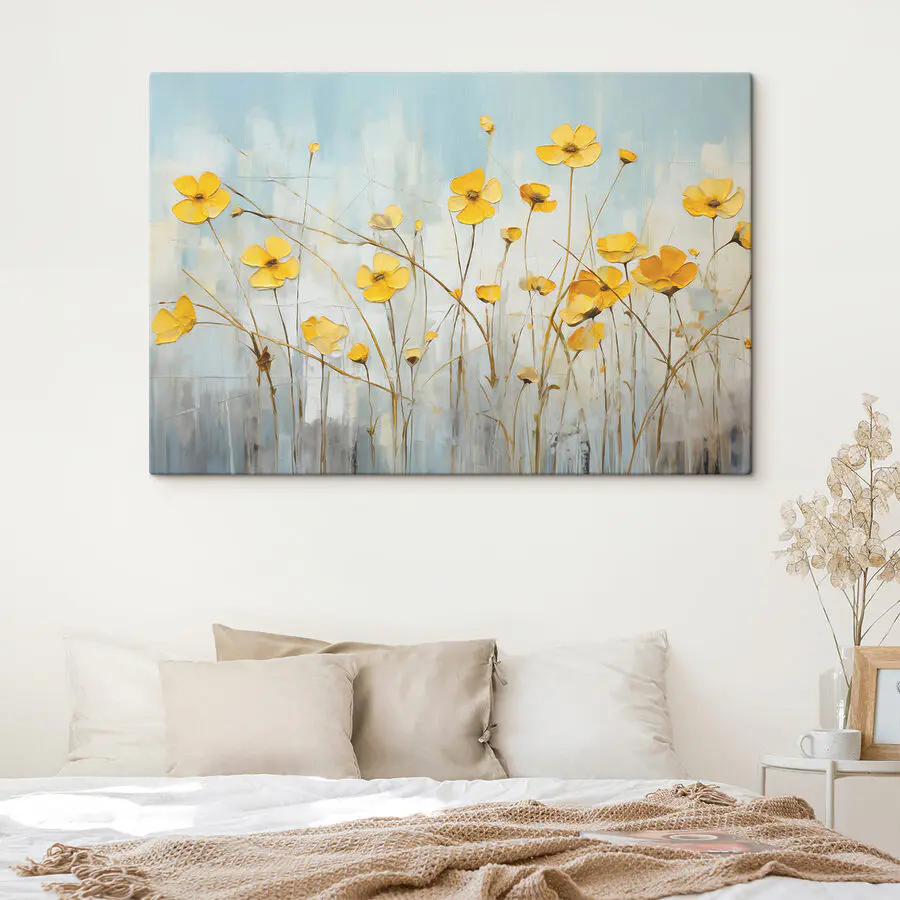 Czy kiedykolwiek spacerowałeś po łące w wietrzny dzień i po prostu czułeś przytłaczające poczucie spokoju? To jest dokładnie to, co “Obraz s39823” wnosi do każdej przestrzeni. To urocze płótno pełne jest wesołych żółtych kwiatów kołyszących się delikatnie na miękkim niebieskim tle – to tak, jakby uchwycić idealny wiosenny dzień i powiesić go na ścianie. Pasuje do każdego pomieszczenia, dodając odrobinę spokoju i uroku natury.