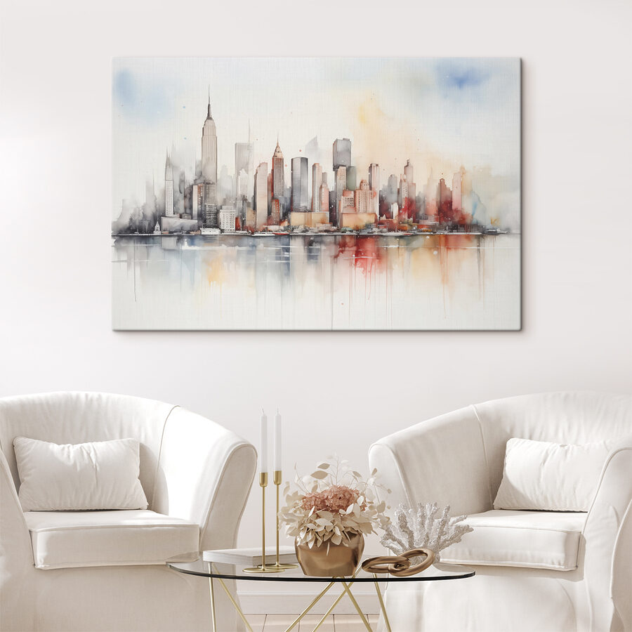 Wyobraź sobie, że budzisz się i każdego ranka wita Cię ten wspaniały akwarelowy wydruk na płótnie przedstawiający panoramę miasta. To tak, jakbyś popijał kawę na tle zamglonej panoramy – prawie spodziewasz się poczuć poranny chłód i usłyszeć odległy szum miasta. Ten wydruk łączy w sobie spokój akwareli z tętniącym życiem miejskim, nadając przestrzeni chłodny, nowoczesny klimat.
