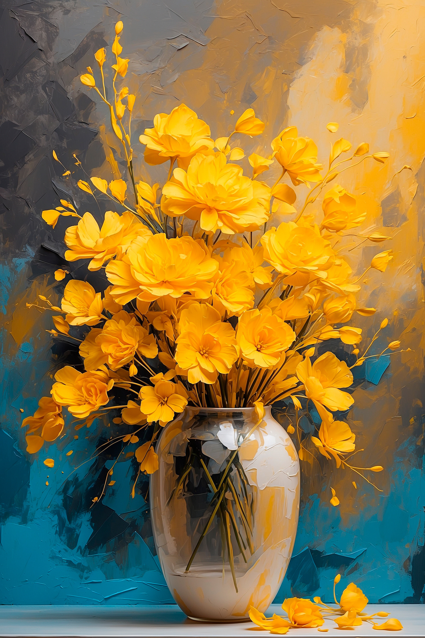 Rozjaśnij każde pomieszczenie dzięki temu wspaniałemu obrazowi na płótnie “Wazon z żółtymi kwiatami”. To jak wybuch słońca na ścianie, przynoszący ciepłą, radosną atmosferę bez potrzeby podlewania. Wyobraź sobie, że wchodzisz do pomieszczenia i czujesz się natychmiast podniesiony na duchu przez te żywe płatki – jak mini ucieczka do słonecznego ogrodu. Idealny do każdego pomieszczenia, które potrzebuje odrobiny koloru lub przytulnego akcentu. Znajomi prawdopodobnie będą pytać, gdzie go znalazłeś, a ty możesz się uśmiechnąć, wiedząc, że jest to sekretny składnik twojego stylowego wystroju. Połącz go ze swoimi ulubionymi elementami i obserwuj, jak kradnie show!