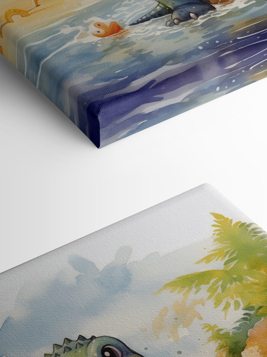 Wnieś odrobinę kaprysu do każdej przestrzeni dzięki temu uroczemu drukowi na płótnie przedstawiającemu dinozaura radośnie pluskającego się w wodzie. Jego zabawny klimat sprawia, że idealnie nadaje się do pokoju dziecięcego, placu zabaw, a nawet dziwacznego kącika w salonie, który po prostu potrzebuje szczypty zabawy. Wyobraź sobie przyjaznego dinozaura cieszącego się słonecznym dniem na plaży – kto by się na to nie uśmiechnął? Jasne kolory i wesoła scena mogą wywołać radość i zainspirować niezliczone zabawne historie. Niezależnie od tego, czy jest to początek rozmowy, czy po prostu zachwycające tło, ten element dodaje element radości, który jest jak ciepły uścisk. Idealny dla wszystkich grup wiekowych, z pewnością stworzy szczęśliwy kącik w domu.