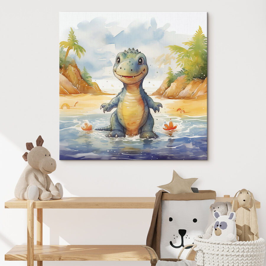 Wnieś odrobinę kaprysu do każdej przestrzeni dzięki temu uroczemu drukowi na płótnie przedstawiającemu dinozaura radośnie pluskającego się w wodzie. Jego zabawny klimat sprawia, że idealnie nadaje się do pokoju dziecięcego, placu zabaw, a nawet dziwacznego kącika w salonie, który po prostu potrzebuje szczypty zabawy. Wyobraź sobie przyjaznego dinozaura cieszącego się słonecznym dniem na plaży – kto by się na to nie uśmiechnął? Jasne kolory i wesoła scena mogą wywołać radość i zainspirować niezliczone zabawne historie. Niezależnie od tego, czy jest to początek rozmowy, czy po prostu zachwycające tło, ten element dodaje element radości, który jest jak ciepły uścisk. Idealny dla wszystkich grup wiekowych, z pewnością stworzy szczęśliwy kącik w domu.