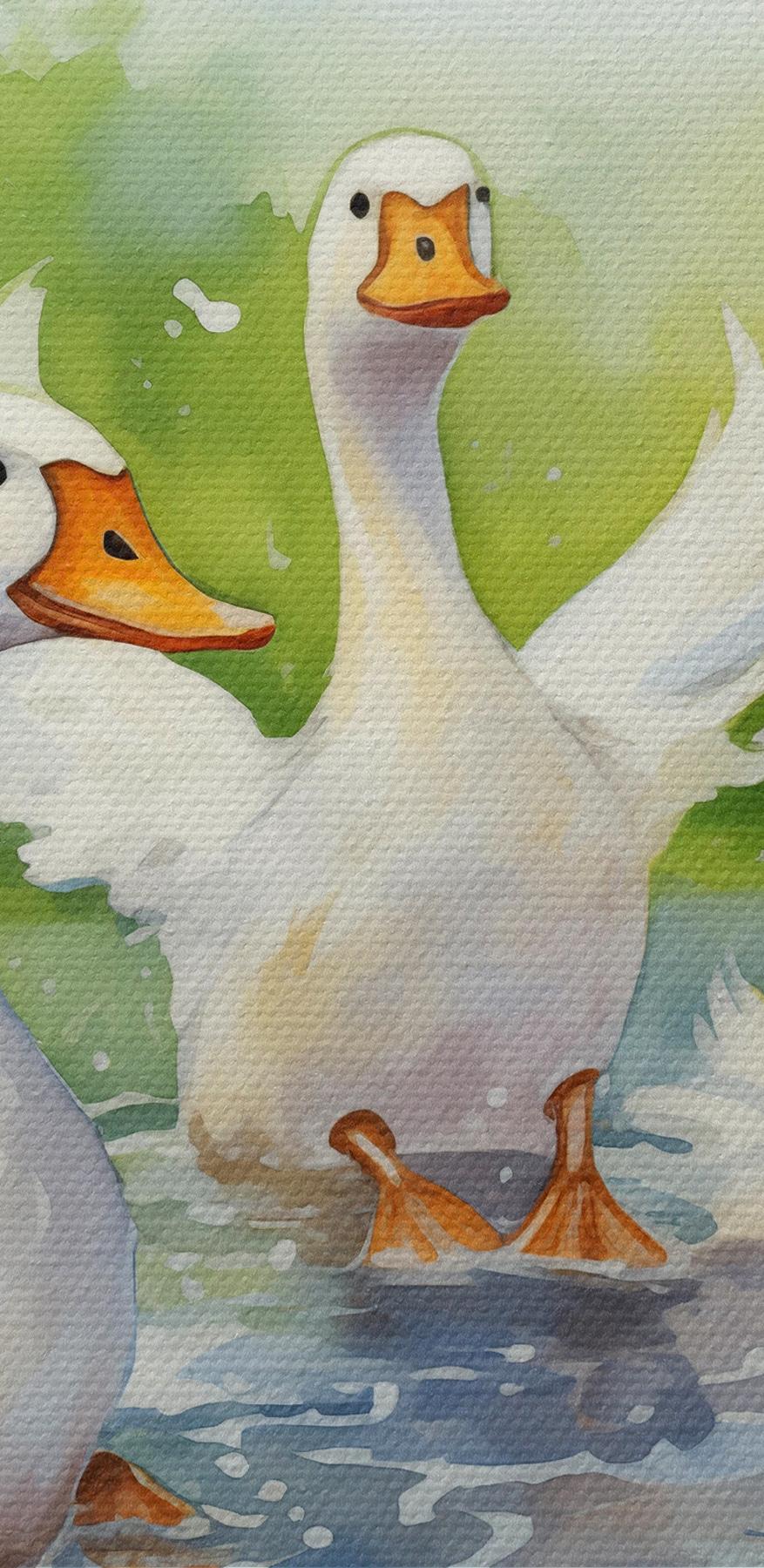Sprawdź ten wspaniały wydruk na płótnie “s39939” – to jak zaproszenie odrobiny radości do swojego domu! Wyobraź to sobie: akwarelowa kraina czarów przedstawiająca dziwaczne i urocze kaczki cieszące się spokojną kąpielą. Każdy z tych pierzastych przyjaciół wygląda tak żywo, że można niemal usłyszeć ich zabawne kwakanie.