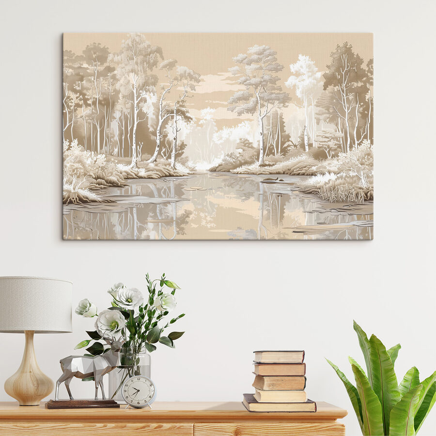 Wyobraź sobie, że wchodzisz do oazy spokoju za każdym razem, gdy wchodzisz do swojego pokoju. Ten wydruk na płótnie przedstawiający spokojną rzekę otoczoną bujnymi drzewami i delikatnymi roślinami wprowadza spokój natury do wnętrza. Delikatne odbicie w wodzie sprawia, że czujesz się jak w raju na swojej ścianie. Idealny do przytulnego kącika do czytania lub uspokajającej sypialni, przypomina o zwolnieniu tempa i oddychaniu. Kto nie chciałby marzyć nad rzeką? Wystarczy powiesić go, zapalić świecę i rozpocząć relaks. Otocz się urokiem natury i pozwól swoim zmartwieniom odpłynąć.