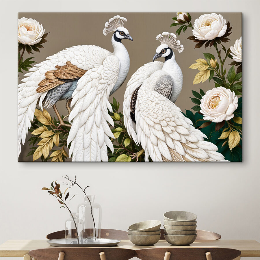 Czy kiedykolwiek czułeś, że Twoim ścianom przydałoby się trochę uroku – odrobina elegancji? Przywitaj się z “Obraz s40022”. Ten piękny obraz przedstawia dwa wspaniałe białe pawie, których pióra wyglądają tak realistycznie, że można by się spodziewać, że będą się trzepotać! A te piwonie – och, takie bujne kwiaty! Wyobraź sobie, że ta uderzająca scena zdobi twoją przestrzeń. To jak powiew świeżego powietrza uchwycony na płótnie.