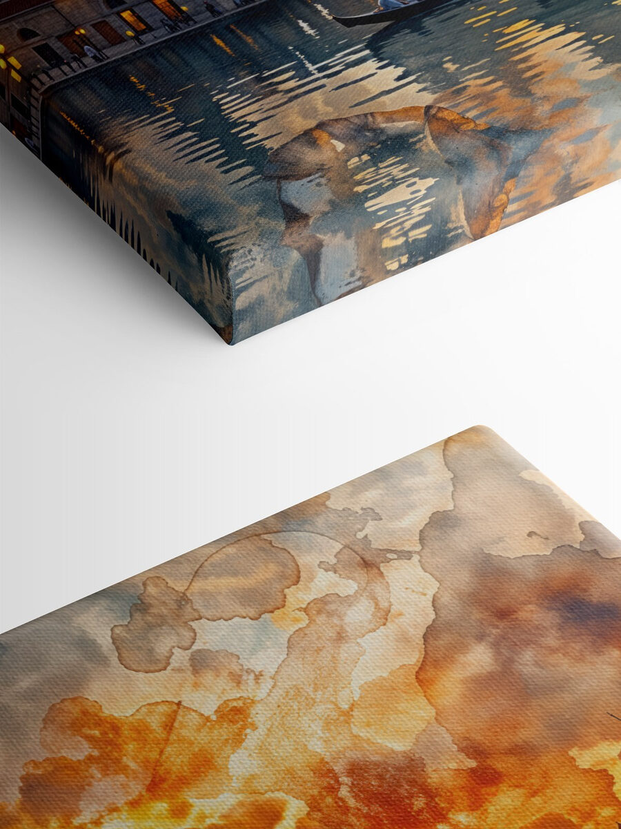 Przekształć dowolną ścianę w spokojną ucieczkę dzięki temu hipnotyzującemu wydrukowi na płótnie. Malownicza scena przedstawia spokojne wody odbijające oszałamiający zachód słońca i uroczą architekturę. Wyobraź sobie delikatne dźwięki płynącej łodzi, być może odległy śmiech lub delikatny plusk wioseł w wodzie. To prawie jak zaproszenie kawałka magii podróży do swojego domu. Idealny do stworzenia spokojnej atmosfery, ten obraz zachęca do marzeń o nadmorskich spacerach i spokojnych chwilach nad wodą. To zachwycający dodatek, który pobudza do rozmowy i daje poczucie spokoju. Kto nie chciałby mieć odrobiny spokoju w swoim domu?