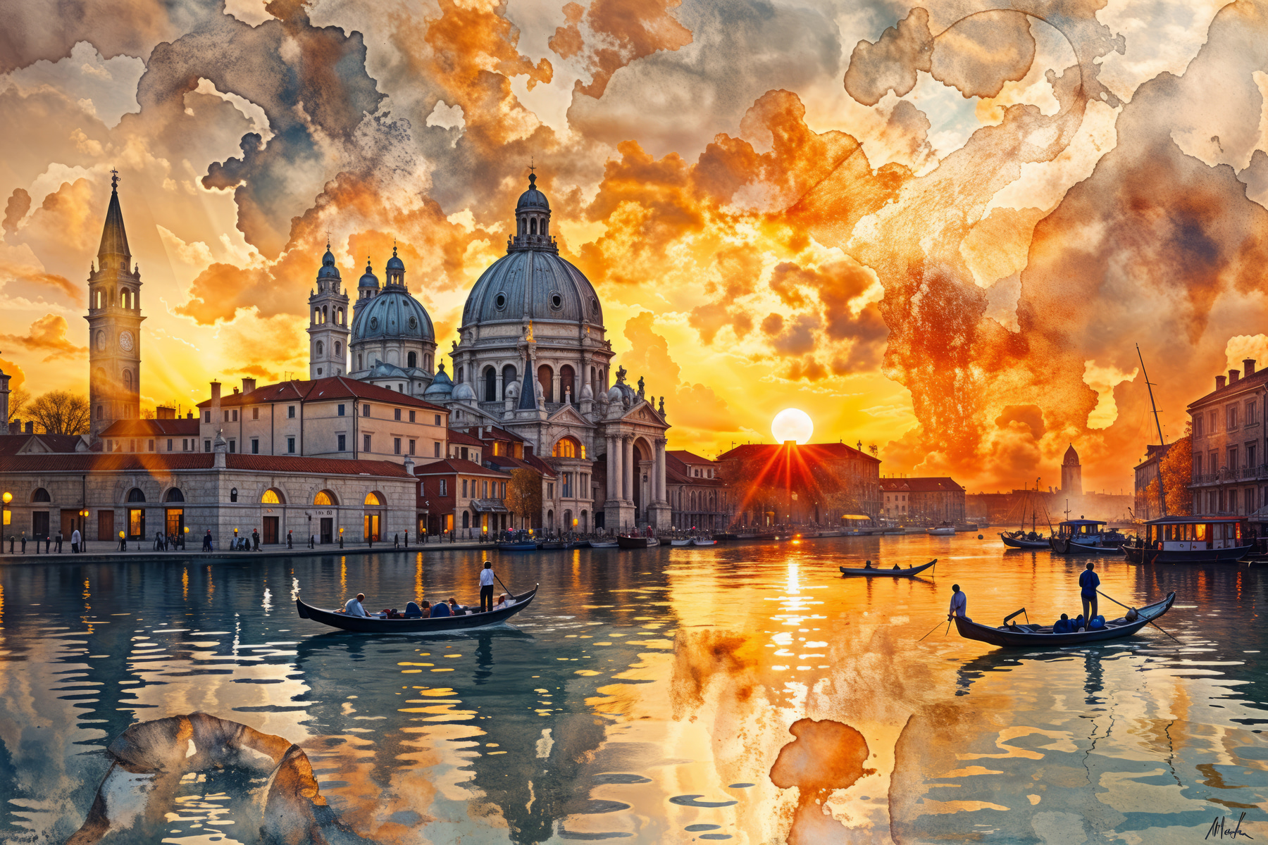 Przekształć dowolną ścianę w spokojną ucieczkę dzięki temu hipnotyzującemu wydrukowi na płótnie. Malownicza scena przedstawia spokojne wody odbijające oszałamiający zachód słońca i uroczą architekturę. Wyobraź sobie delikatne dźwięki płynącej łodzi, być może odległy śmiech lub delikatny plusk wioseł w wodzie. To prawie jak zaproszenie kawałka magii podróży do swojego domu. Idealny do stworzenia spokojnej atmosfery, ten obraz zachęca do marzeń o nadmorskich spacerach i spokojnych chwilach nad wodą. To zachwycający dodatek, który pobudza do rozmowy i daje poczucie spokoju. Kto nie chciałby mieć odrobiny spokoju w swoim domu?