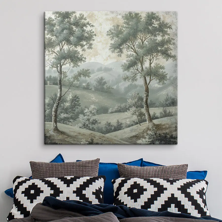 Czy kiedykolwiek patrzyłeś na pustą ścianę i czułeś, że ona czegoś potrzebuje? Ten wydruk na płótnie jest jak okno na spokojny, senny krajobraz. Wyobraź sobie delikatny spacer po tych spokojnych wzgórzach, liście szeleszczące delikatnie na wietrze… czysta błogość, prawda? Idealnie nadaje się do dodania odrobiny spokoju do salonu lub przestrzeni biurowej. Jest coś niemal magicznego w tym, jak miękkie zielenie i ziemiste odcienie współgrają ze sobą; to jak kołysanka natury. Idealny dla miłośników przyrody lub każdego, kto potrzebuje oddechu świeżego powietrza we wnętrzu. Ten obraz to nie tylko sztuka na ścianie – to nastrój, klimat, mała ucieczka od codziennego zgiełku… za każdym razem, gdy na niego spojrzysz!