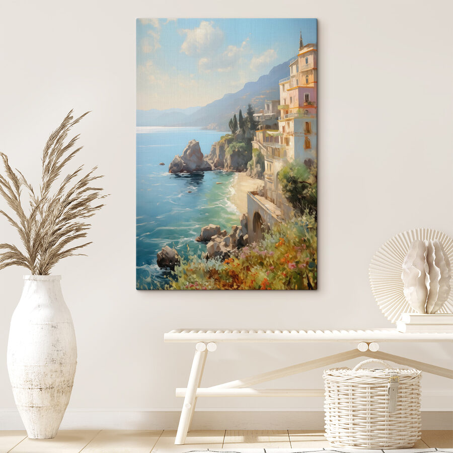 Czy kiedykolwiek chciałeś teleportować się do wymarzonej nadmorskiej ucieczki bez wychodzenia z salonu? Ten wydruk na płótnie, znany jako “Obraz s40088”, to praktycznie bilet w jedną stronę do nadmorskiej błogości – bez piasku w butach! Wyobraź sobie tę scenę na swojej ścianie: pastelowe budynki przylegające do skalistego klifu, bujna śródziemnomorska zieleń tańcząca na wietrze i lśniąca turkusowa woda, którą można niemal usłyszeć uderzającą o brzeg. To zachwycająca mieszanka najlepszych hitów natury – kwiatów, morza, odrobiny górskiej magii. Idealny do przestrzeni, w których chcesz dodać odrobinę codziennego eskapizmu. Niezależnie od tego, czy jest to salon, kącik do czytania, czy nawet korytarz, z pewnością wywoła uśmiech lub marzenie. Poczuj się jak na wakacjach – bez jet lagu!